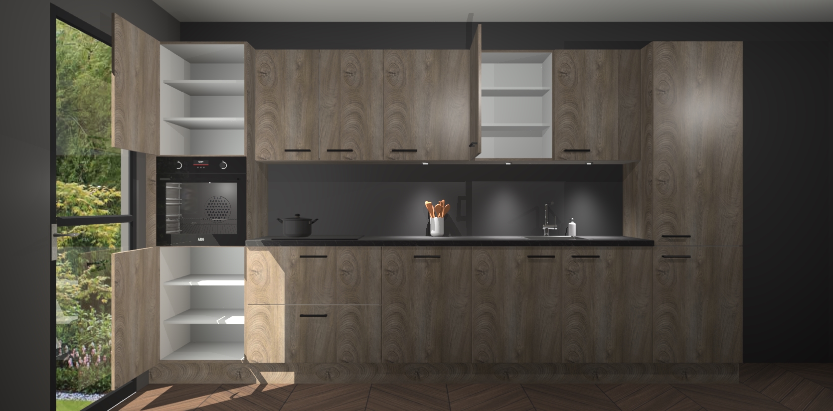 Dit is de perfecte keuken voor wie op zoek is naar een luxueuze stijl zonder zijn portemonnee te legen! Het chique ontwerp van de cantaro eiken keuken Wels voegt dat vleugje verfijning toe aan elk huis. Het gemak van voorgemonteerde kasten bespaart u talloze uren tijd en energie, zodat u veel sneller dan verwacht kunt beginnen te genieten van uw prachtige nieuwe keuken. Bovendien bedraagt de levertijd slechts 7 weken.