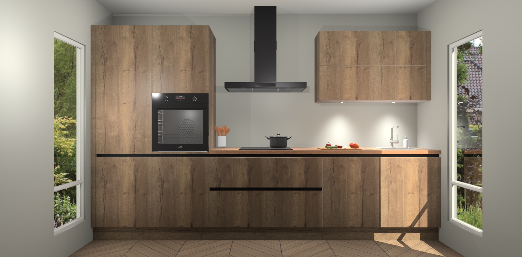 Met een levering binnen 7 weken na bestelling heeft deze keuken bovendien geen last van de ongemakkelijke lange wachttijden die bij andere keukens horen - geen vertragingen meer; gewoon snel resultaat! Krijg meteen die droomkeuken look met de Chocolade Eiken greeploze Keuken Parijs!