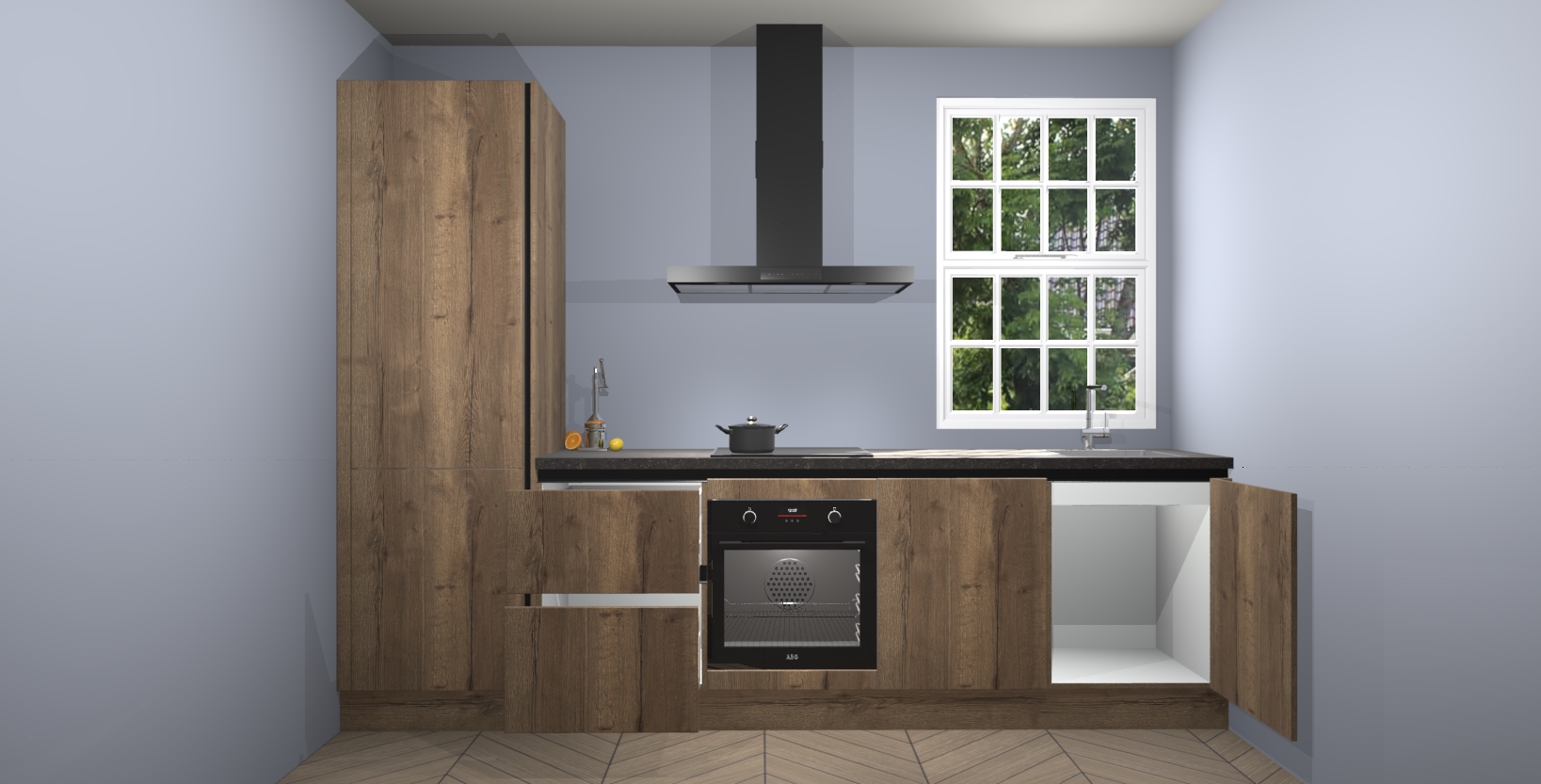 Inclusief plinten, stelpoten en werkblad