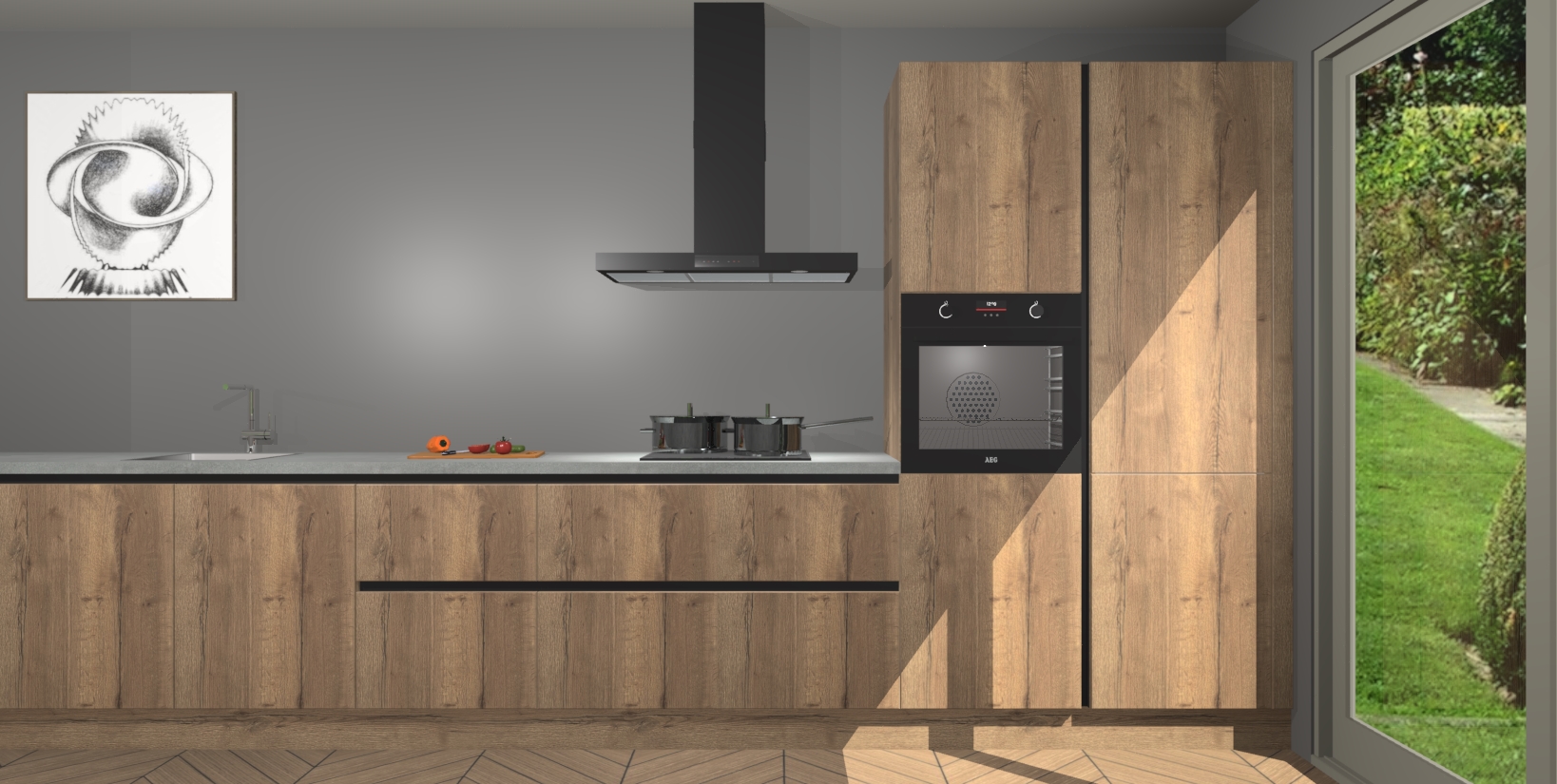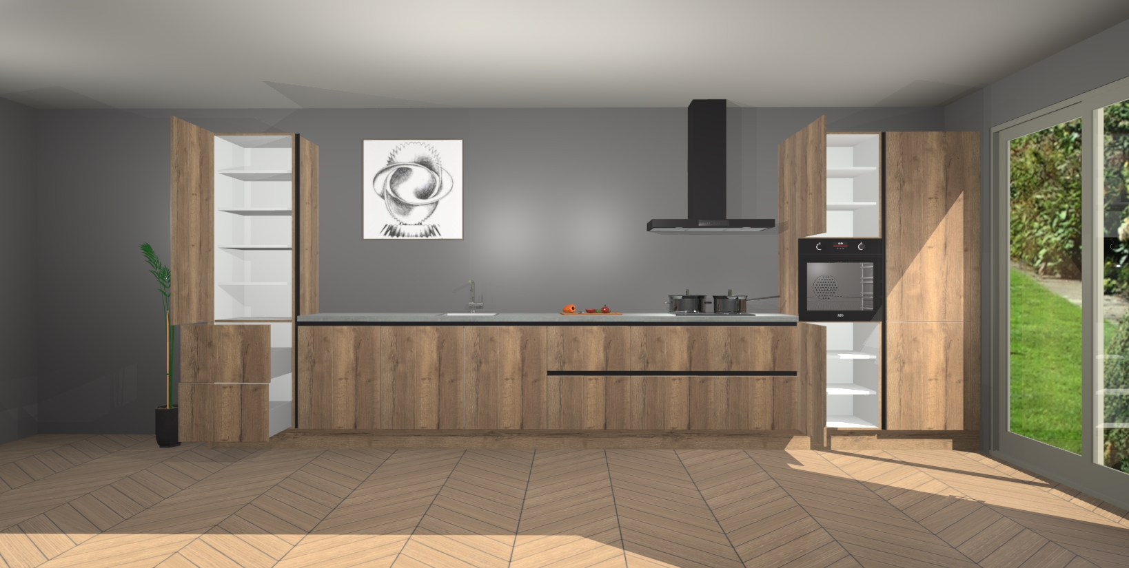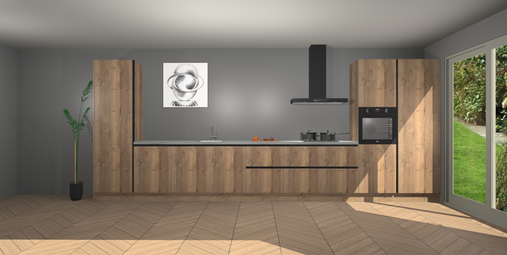 De Chocolade Eiken greeploze keuken Barentsburg is de perfecte combinatie van stijl en functionaliteit. Het strakke design geeft uw keuken een moderne look die jarenlang meegaat. Bovendien zorgen onze deuren met softclose voor extra gebruiksgemak en gemoedsrust.