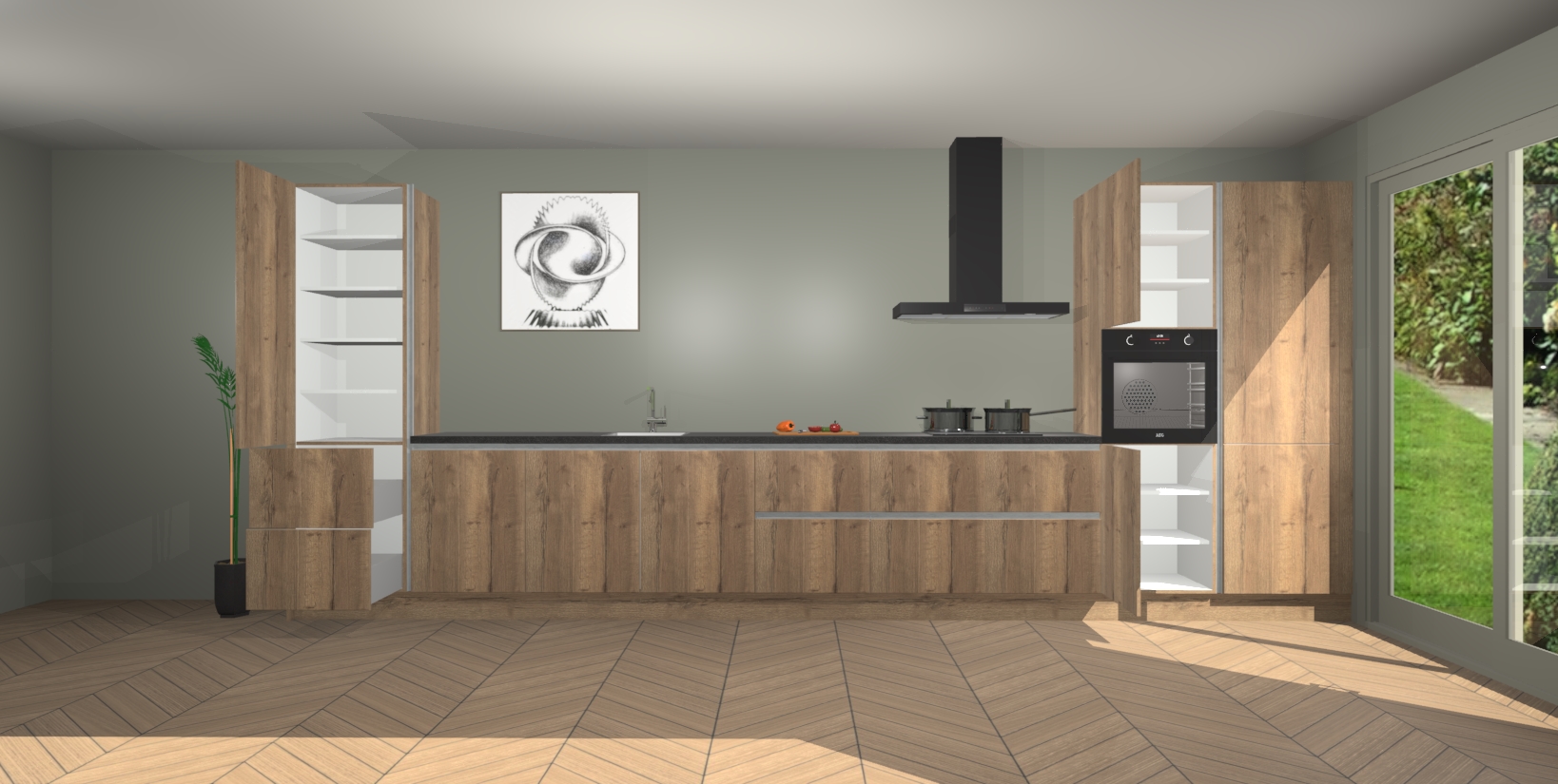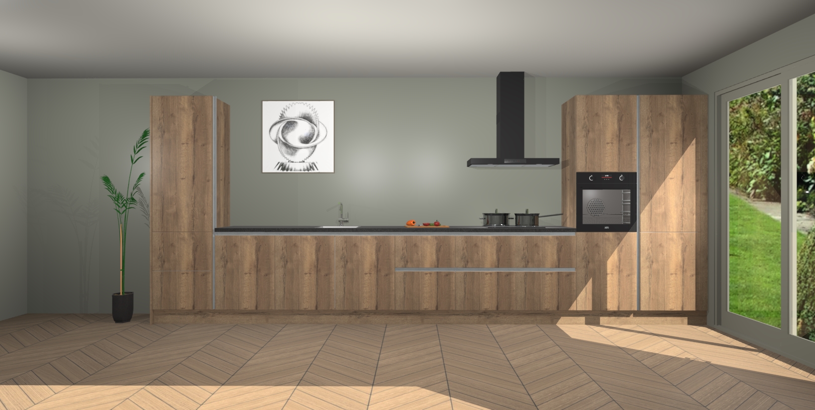 De Chocolade Eiken greeploze keuken Barentsburg is de perfecte combinatie van stijl en functionaliteit. Het strakke design geeft uw keuken een moderne look die jarenlang meegaat. Bovendien zorgen onze deuren met softclose voor extra gebruiksgemak en gemoedsrust.