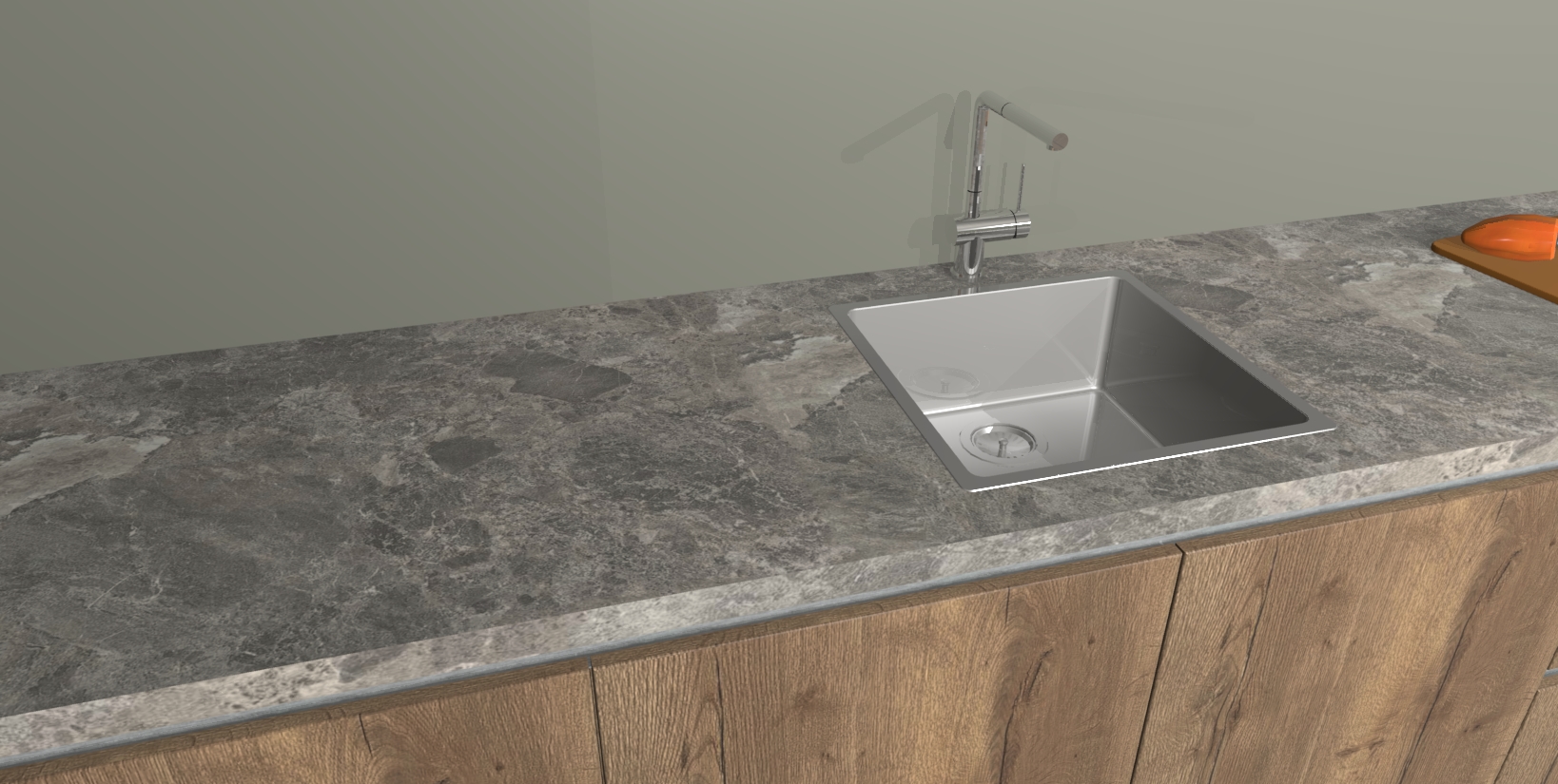 • De spoelbak is nog niet in gevreesd. Dit dient tijdens het werk gedaan te worden