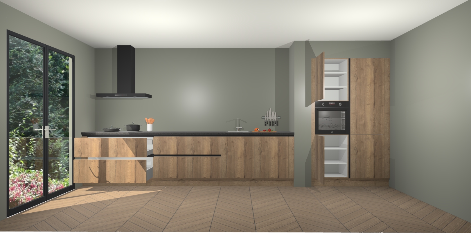 Maak kennis met de Chocolade Eiken greeploze keuken Calgary - de perfecte aanvulling voor uw moderne keuken! Ervaar tijdloos design, elegantie en een chique uitstraling met onze handgrepen, soft-close deuren en veel opbergruimte. Dit alles wordt aangeboden tegen een vaste lage prijs voor ongeëvenaarde Duitse keukenkwaliteit!