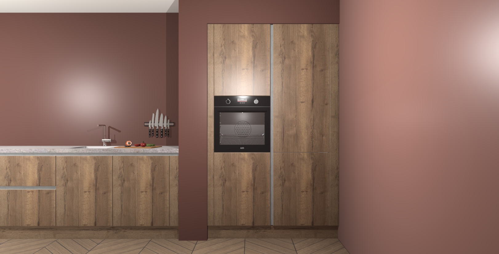 Maak kennis met de Chocolade Eiken greeploze keuken Calgary - de perfecte aanvulling voor uw moderne keuken! Ervaar tijdloos design, elegantie en een chique uitstraling met onze handgrepen, soft-close deuren en veel opbergruimte. Dit alles wordt aangeboden tegen een vaste lage prijs voor ongeëvenaarde Duitse keukenkwaliteit!