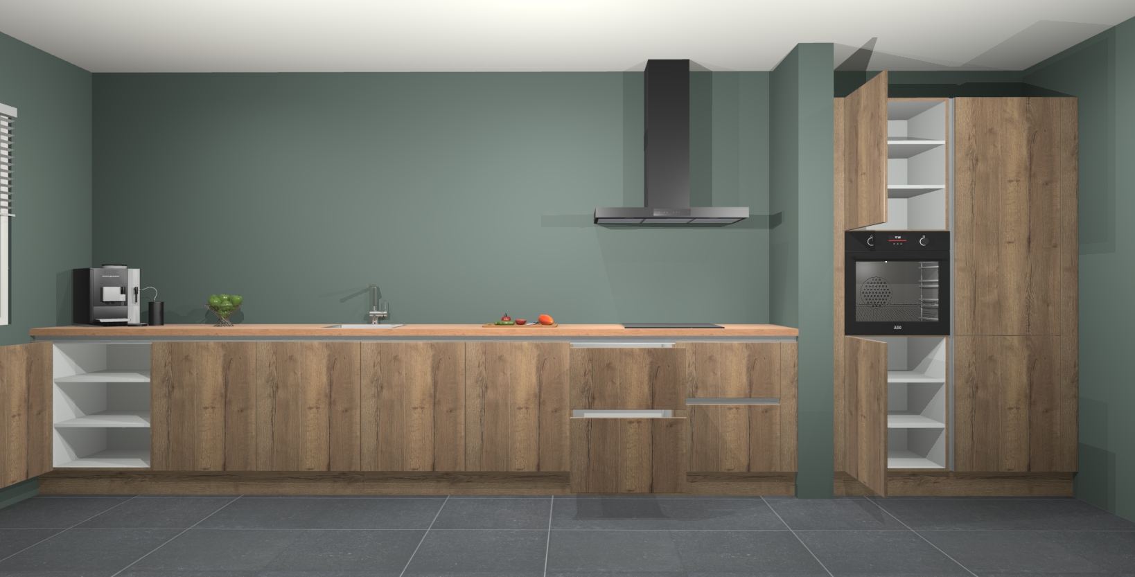 Maak kennis met de Chocolade eiken keuken Elzas - de perfecte aanvulling voor uw moderne keuken! Ervaar tijdloos design, elegantie en een chique uitstraling met onze handgrepen, soft-close deuren en veel opbergruimte. Dit alles wordt aangeboden tegen een vaste lage prijs voor ongeëvenaarde Duitse keukenkwaliteit!