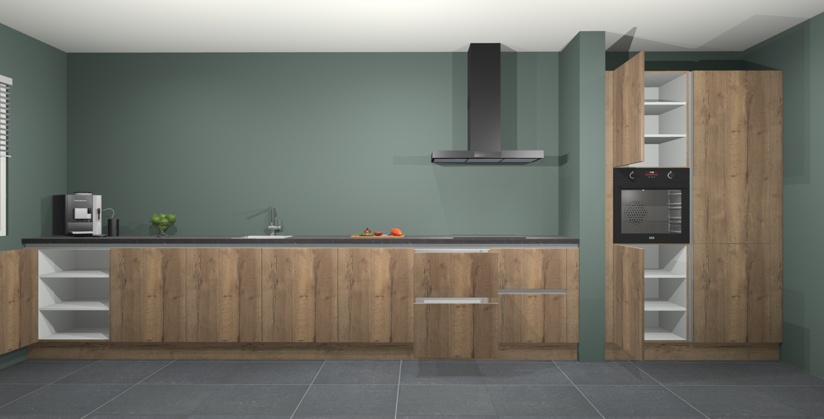 Maak kennis met de Chocolade eiken keuken Elzas - de perfecte aanvulling voor uw moderne keuken! Ervaar tijdloos design, elegantie en een chique uitstraling met onze handgrepen, soft-close deuren en veel opbergruimte. Dit alles wordt aangeboden tegen een vaste lage prijs voor ongeëvenaarde Duitse keukenkwaliteit!