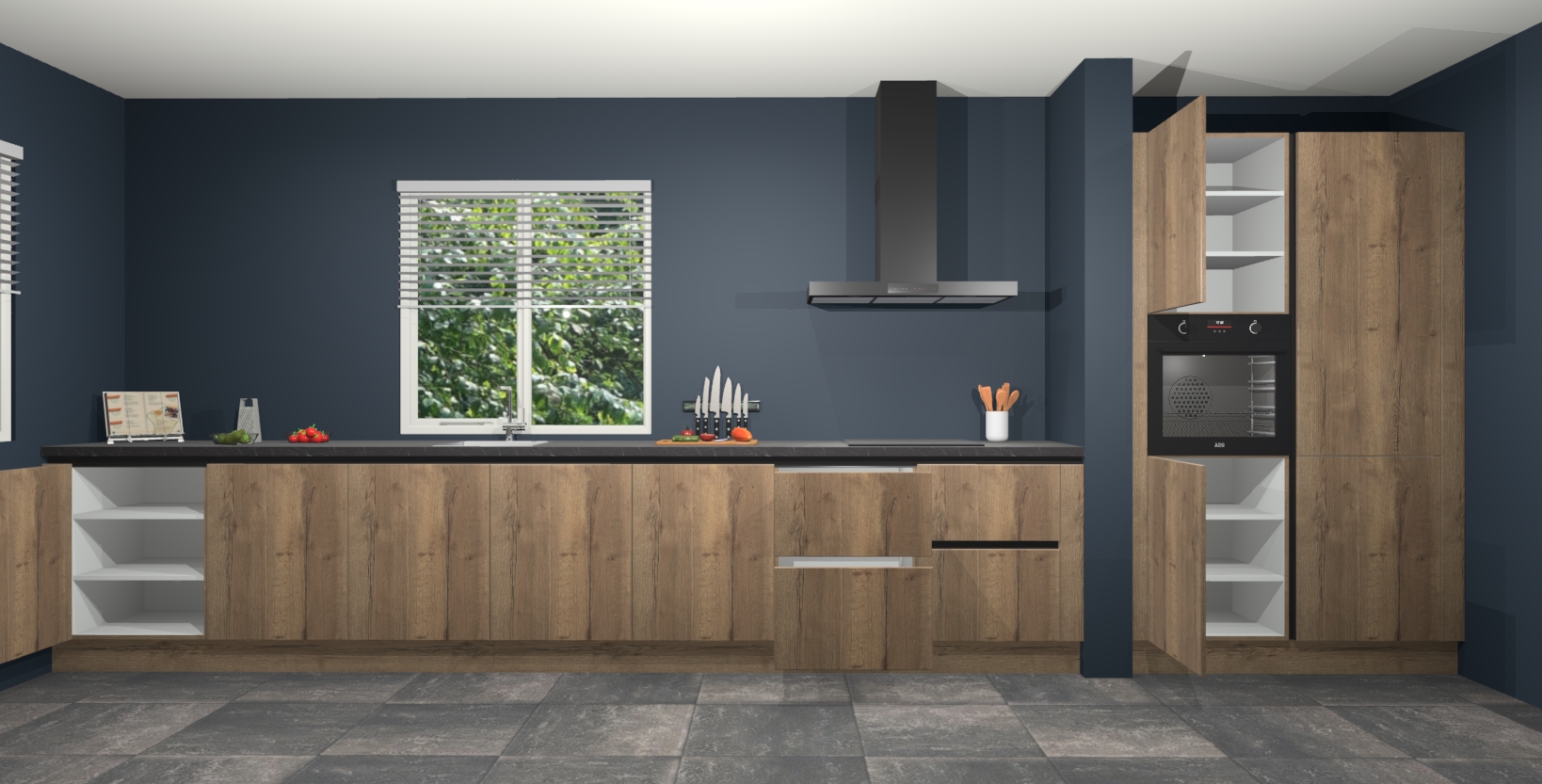 Maak kennis met de Chocolade eiken keuken Elzas - de perfecte aanvulling voor uw moderne keuken! Ervaar tijdloos design, elegantie en een chique uitstraling met onze handgrepen, soft-close deuren en veel opbergruimte. Dit alles wordt aangeboden tegen een vaste lage prijs voor ongeëvenaarde Duitse keukenkwaliteit!