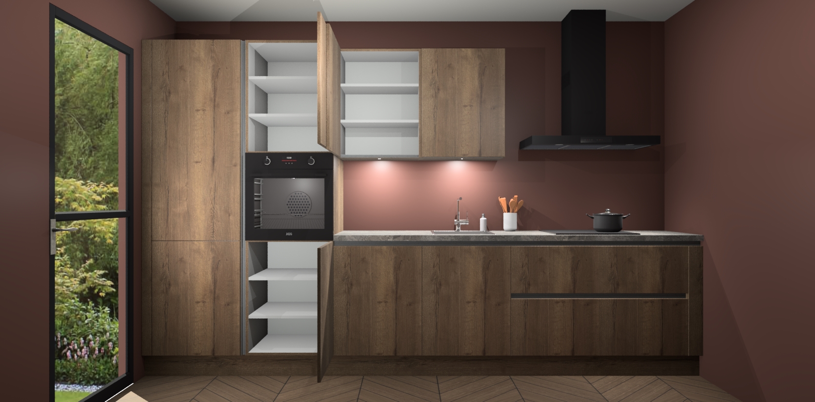 De Chocolade Eiken greeploze keuken Groenland: waar tijdloze elegantie en robuuste constructie elkaar ontmoeten. Door de combinatie van luxe en veerkracht zal deze keuken u de komende jaren goed van dienst zijn. De prachtige zachte look zorgt voor een tijdloze esthetiek die niet zal slijten met de tijd, waardoor u een decoratieve toevoeging aan uw huis creëert. Onze hoogwaardige kasten zijn gebouwd om lang mee te gaan en is zeer duurzaam en bestand tegen krassen, waardoor het ideaal is voor drukke gezinnen.