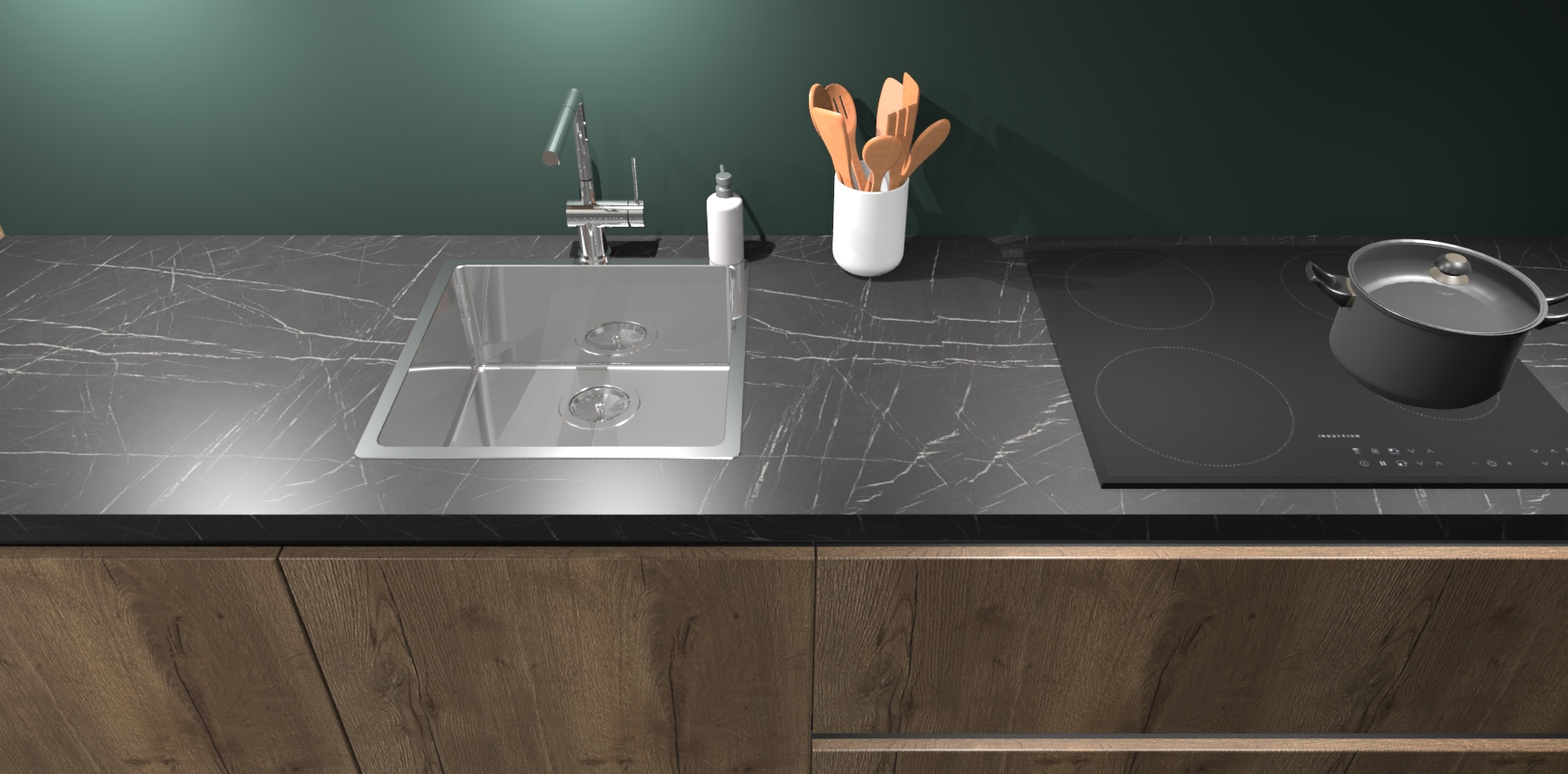 - Bij een hoekwerkblad zijn de hoeken in gevreesd en op maat gemaakt