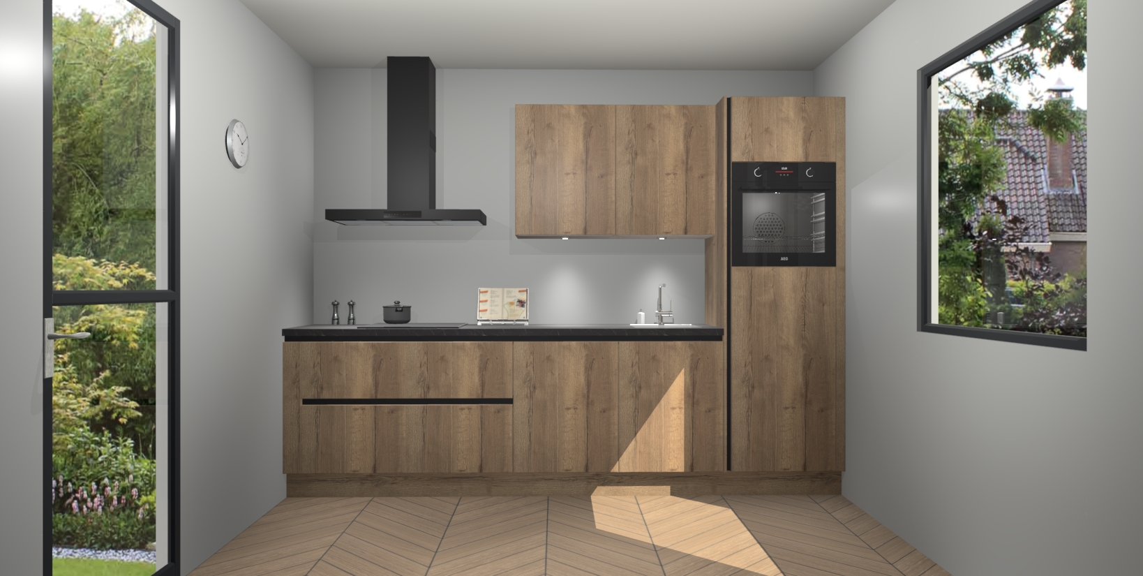 Maak uw keukendromen waar met de Chocolade Eiken greeploze keuken Havana! Onze strakke en stijlvolle keuken is perfect voor elk huis en combineert elegantie en functionaliteit in een luxueus pakket dat al uw gasten zeker zullen bewonderen.