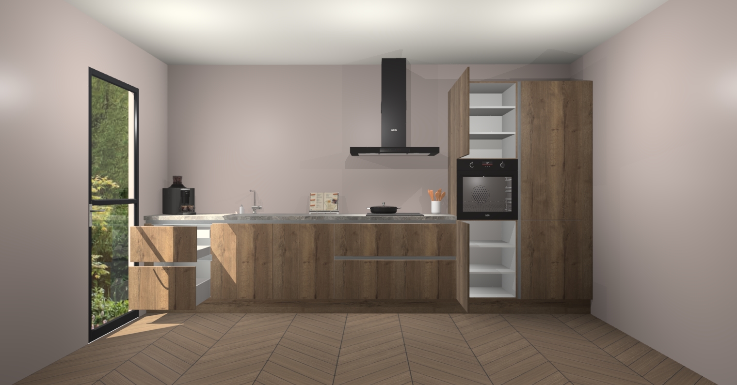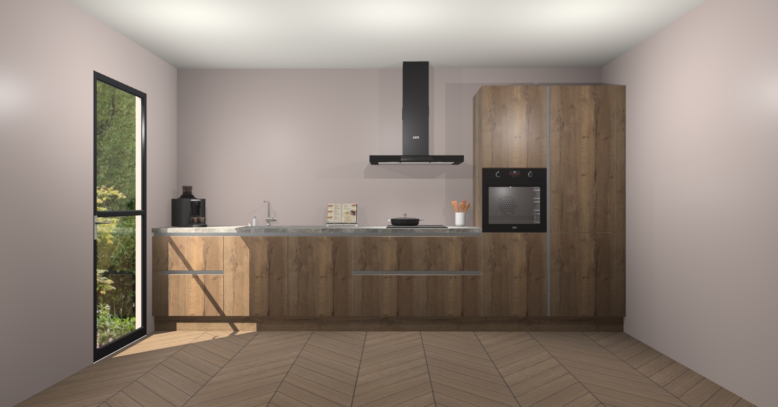 De Chocolade Eiken greeploze keuken Leuven is de perfecte mix van modern en tijdloos design. Met zijn prachtige glazen deuren op de bovenkastjes voegt hij echt iets speciaals en unieks toe aan elke keuken. En met vijf ingebouwde apparaten inbegrepen - een oven, inductiekookplaat, afzuigkap, vaatwasser en koelkast - kunt u deze keuken echt helemaal van uzelf maken! U kunt na bestelling ook upgraden naar AEG voor een nog hogere kwaliteitservaring.