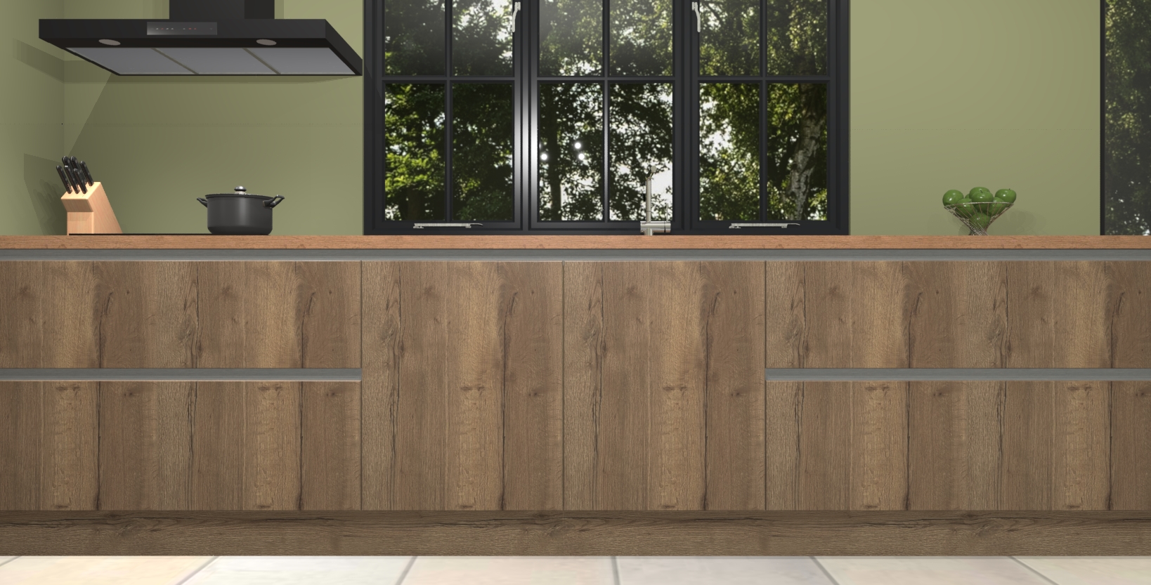 De softclose deuren openen en sluiten is ook heel eenvoudig - geniet van een moeiteloze keukenervaring, zelfs als er kinderen rondlopen. Voor extra gemak bij het plaatsen van uw bestelling bieden we ook een upgrade naar een kookplaat met geïntegreerde afzuiging.