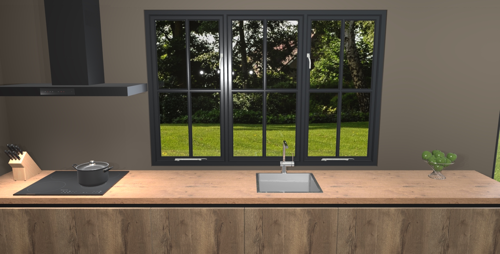 De softclose deuren openen en sluiten is ook heel eenvoudig - geniet van een moeiteloze keukenervaring, zelfs als er kinderen rondlopen. Voor extra gemak bij het plaatsen van uw bestelling bieden we ook een upgrade naar een kookplaat met geïntegreerde afzuiging.