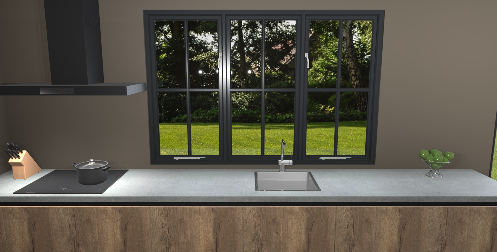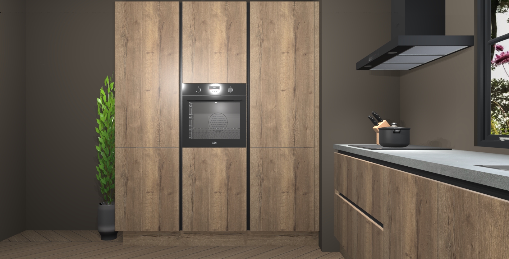 De softclose deuren openen en sluiten is ook heel eenvoudig - geniet van een moeiteloze keukenervaring, zelfs als er kinderen rondlopen. Voor extra gemak bij het plaatsen van uw bestelling bieden we ook een upgrade naar een kookplaat met geïntegreerde afzuiging.