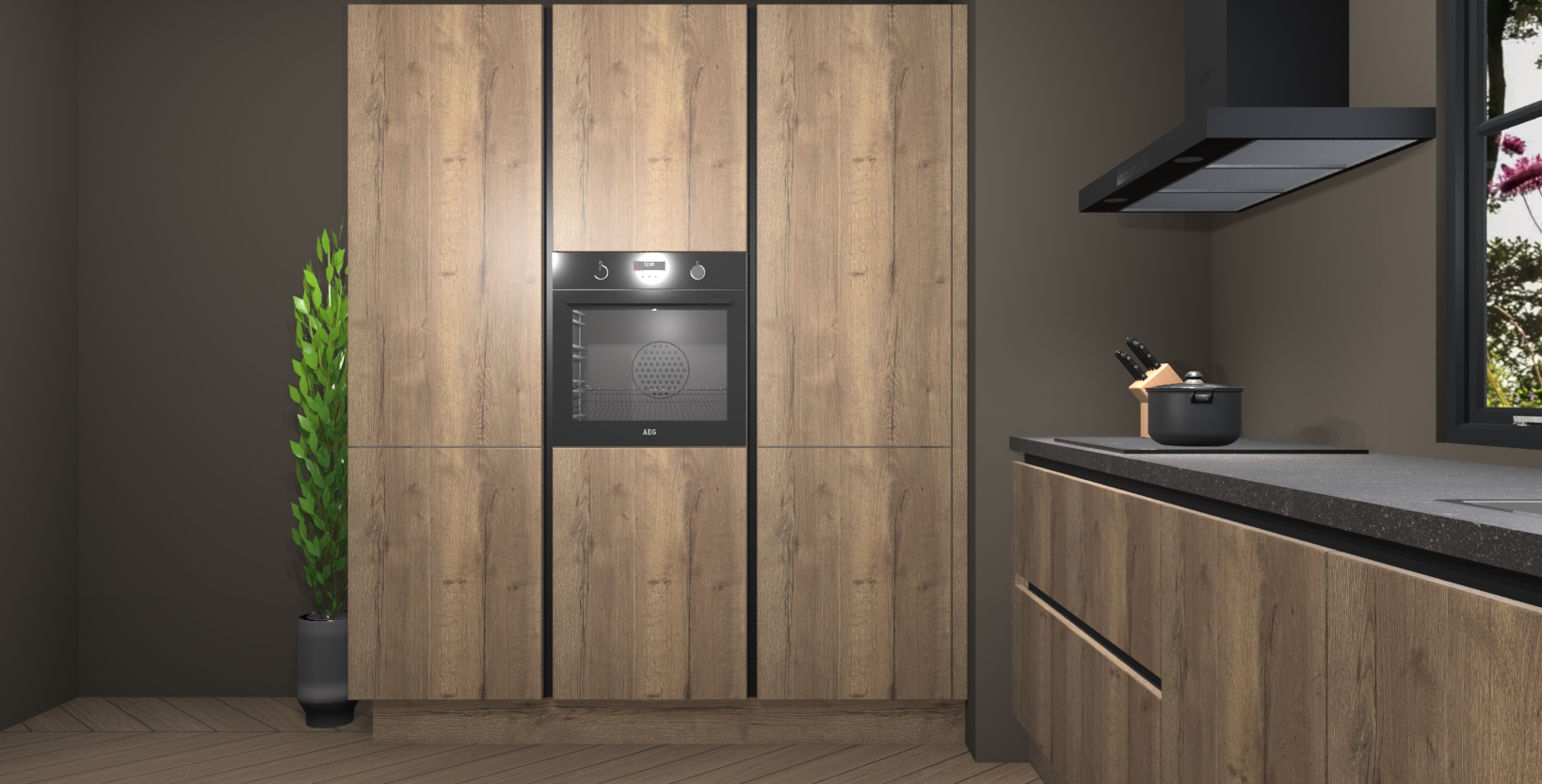 De softclose deuren openen en sluiten is ook heel eenvoudig - geniet van een moeiteloze keukenervaring, zelfs als er kinderen rondlopen. Voor extra gemak bij het plaatsen van uw bestelling bieden we ook een upgrade naar een kookplaat met geïntegreerde afzuiging.