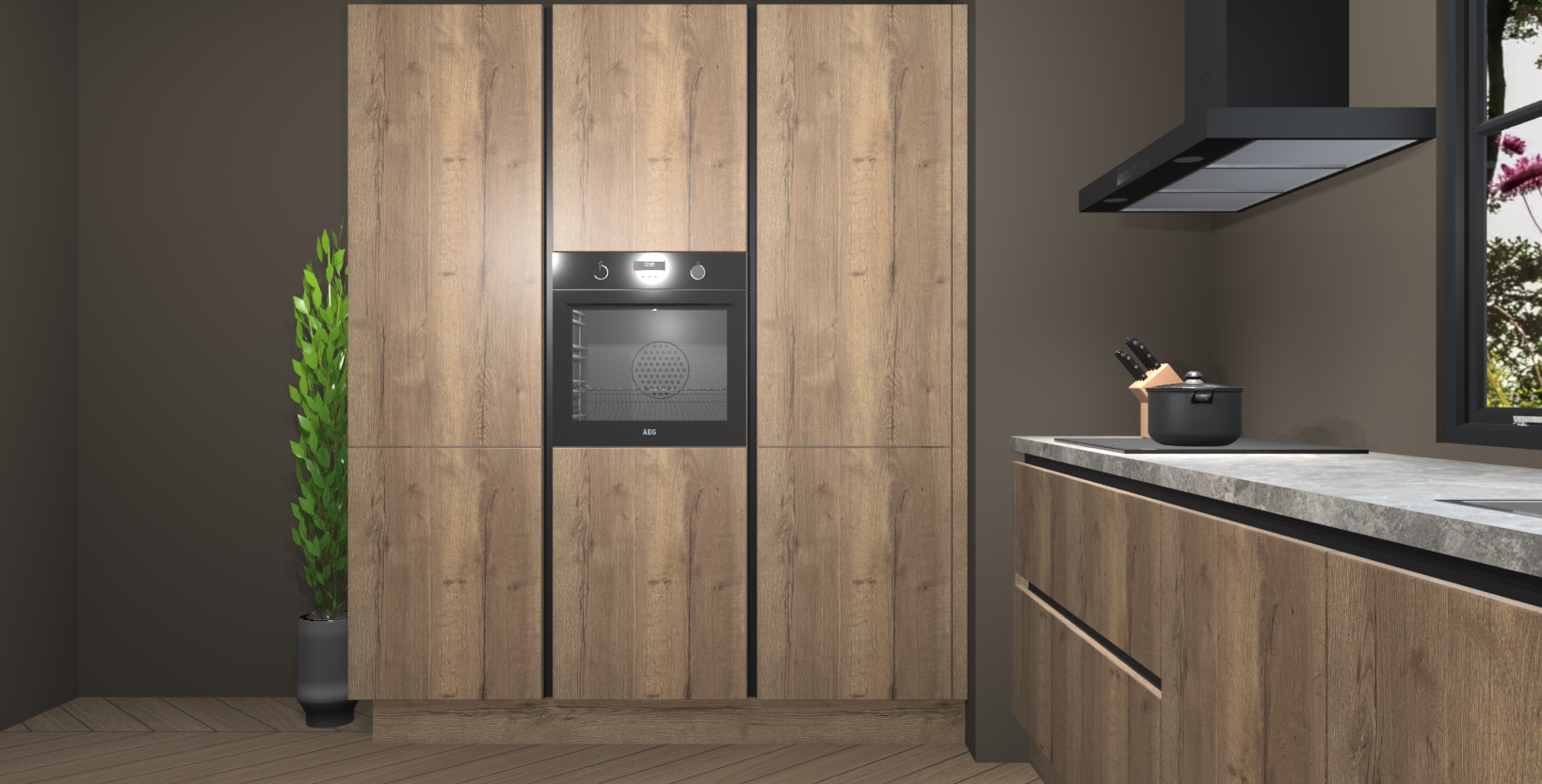De softclose deuren openen en sluiten is ook heel eenvoudig - geniet van een moeiteloze keukenervaring, zelfs als er kinderen rondlopen. Voor extra gemak bij het plaatsen van uw bestelling bieden we ook een upgrade naar een kookplaat met geïntegreerde afzuiging.