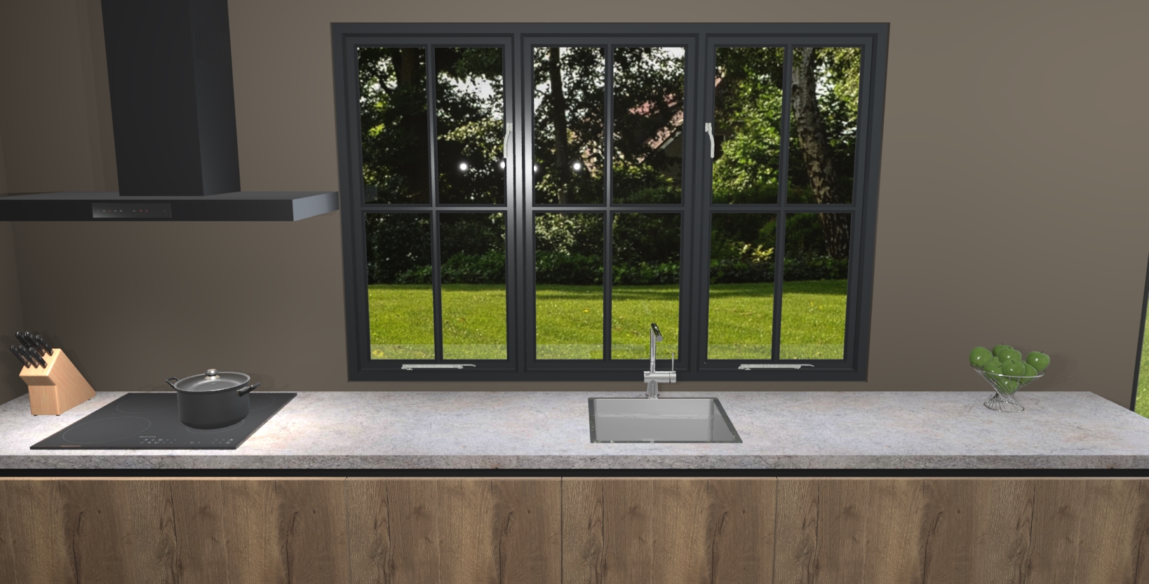 De softclose deuren openen en sluiten is ook heel eenvoudig - geniet van een moeiteloze keukenervaring, zelfs als er kinderen rondlopen. Voor extra gemak bij het plaatsen van uw bestelling bieden we ook een upgrade naar een kookplaat met geïntegreerde afzuiging.