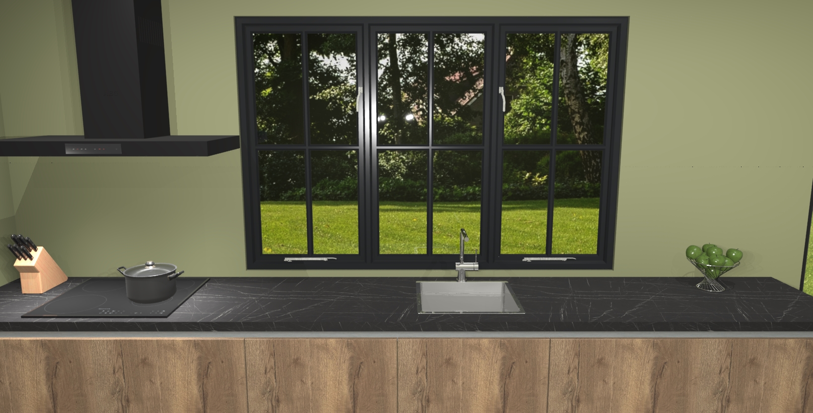 De softclose deuren openen en sluiten is ook heel eenvoudig - geniet van een moeiteloze keukenervaring, zelfs als er kinderen rondlopen. Voor extra gemak bij het plaatsen van uw bestelling bieden we ook een upgrade naar een kookplaat met geïntegreerde afzuiging.