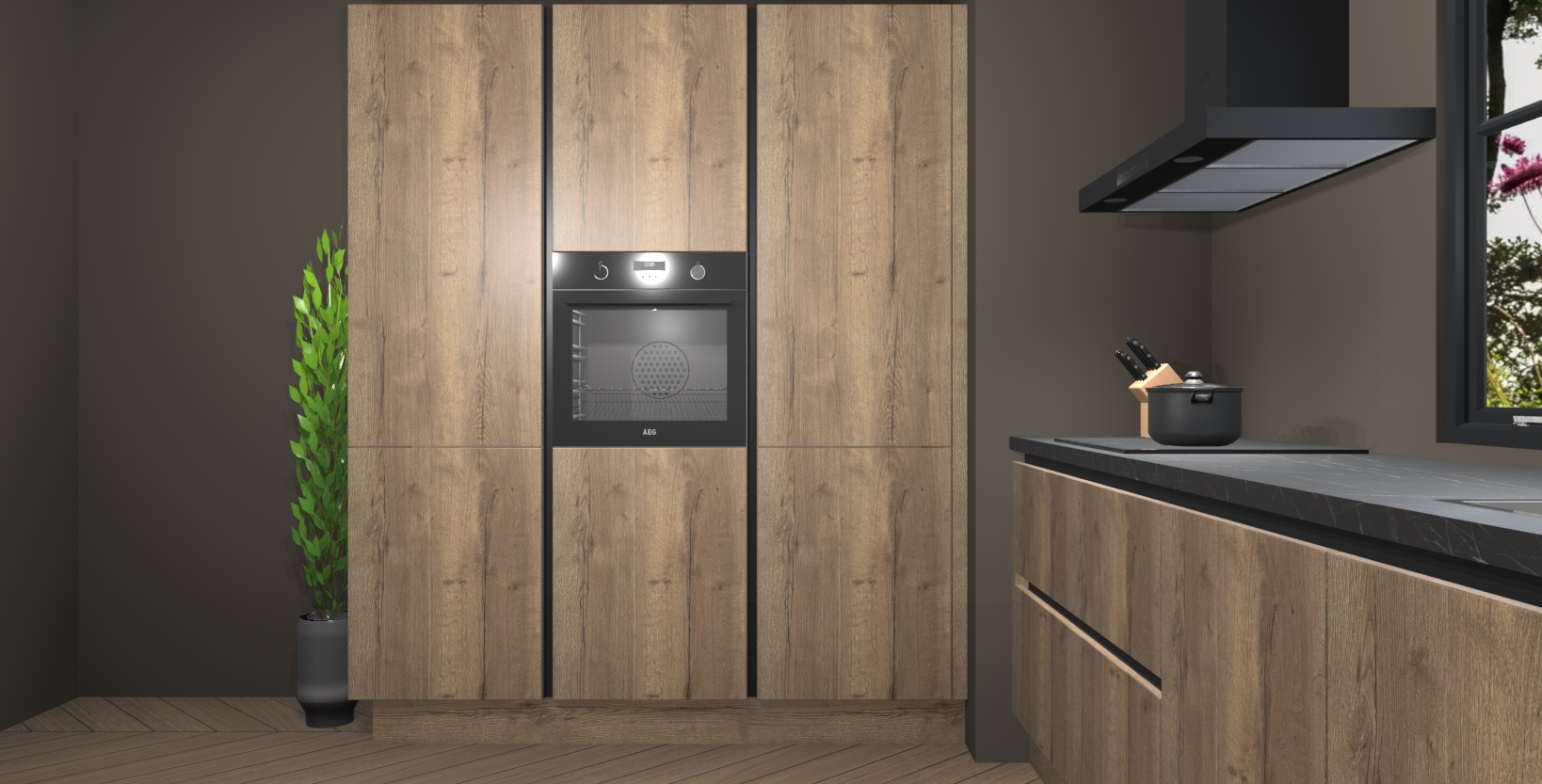 De softclose deuren openen en sluiten is ook heel eenvoudig - geniet van een moeiteloze keukenervaring, zelfs als er kinderen rondlopen. Voor extra gemak bij het plaatsen van uw bestelling bieden we ook een upgrade naar een kookplaat met geïntegreerde afzuiging.