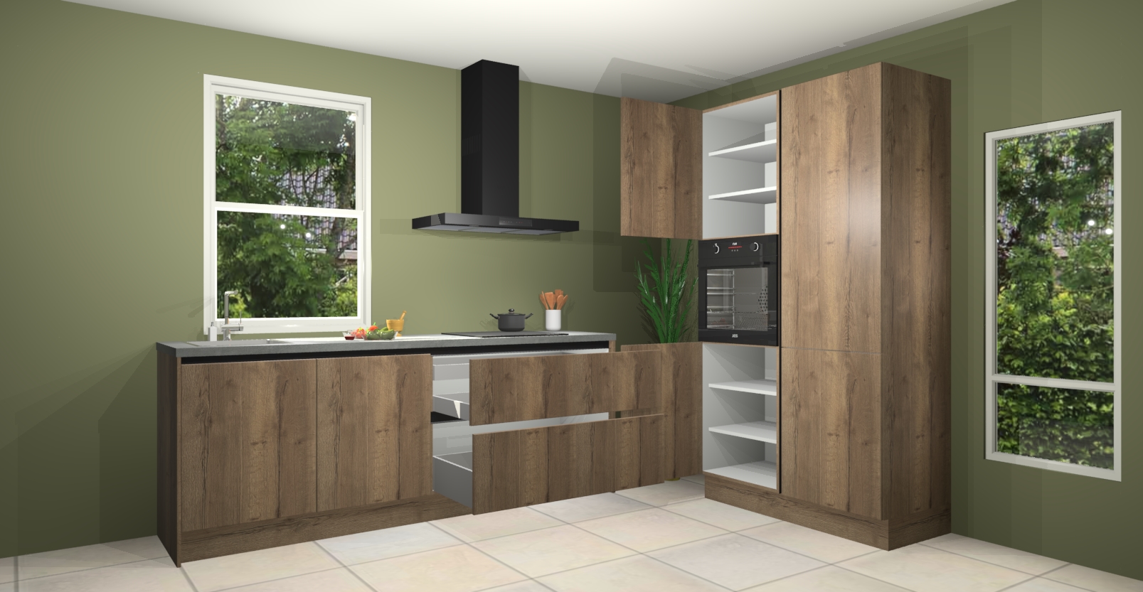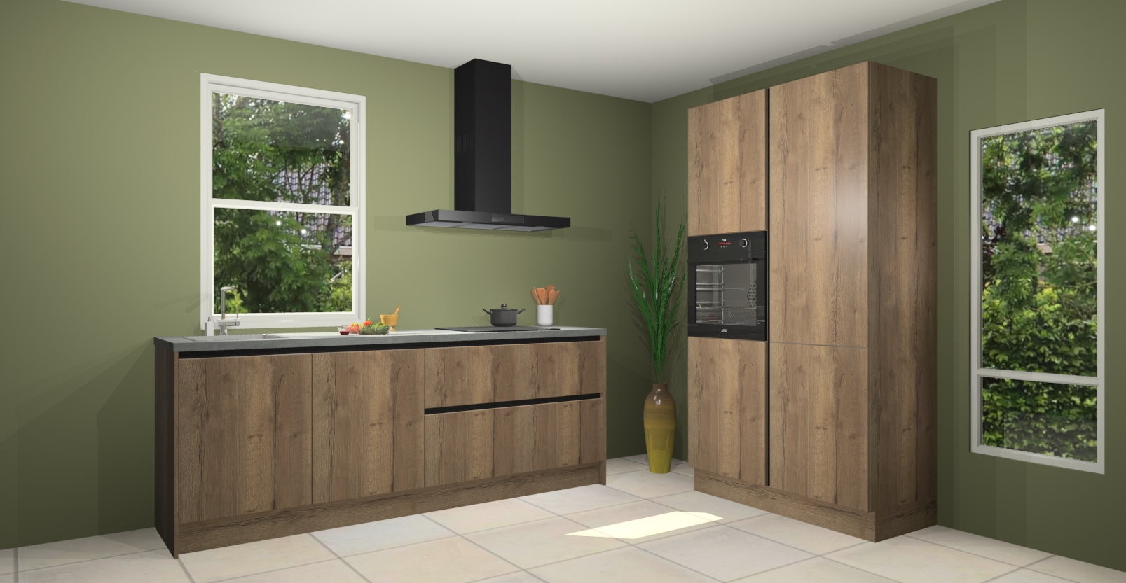 Ervaar het ultieme gevoel van warmte en gezelligheid in uw huis met de luxe Chocolade eiken greeploze keuken Monaco! Deze ongelooflijk sfeervolle houtlook straalt heerlijke warmte uit en tovert elke keuken om tot een gezellig familiecentrum. Breng uw dromen tot leven met deze unieke keuken, ontworpen voor moeiteloze luxe en functionaliteit.
