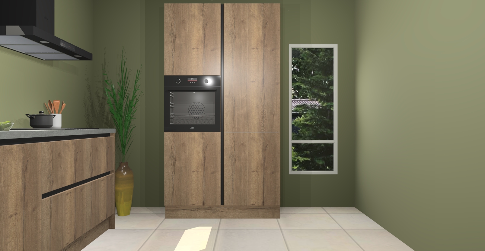 De Chocolade eiken greeploze keuken Monaco heeft voldoende opbergruimte om uw keukenbenodigdheden georganiseerd en netjes te houden. Geniet van het gemak van de soft-close deuren, die deze stijlvolle look perfect afmaken. Maar dat is nog niet alles. Met de Chocolade eiken greeploze keuken Monaco krijgt u maar liefst 5 ingebouwde apparaten: een oven, inductiekookplaat, afzuigkap, vaatwasser en koelkast. Deze kunnen gemakkelijk worden geüpgraded naar AEG als ze besteld zijn.