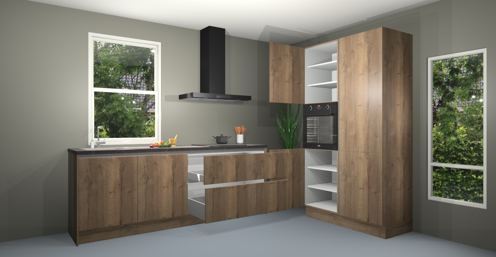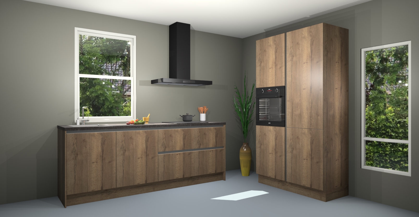 Ervaar het ultieme gevoel van warmte en gezelligheid in uw huis met de luxe Chocolade eiken greeploze keuken Monaco! Deze ongelooflijk sfeervolle houtlook straalt heerlijke warmte uit en tovert elke keuken om tot een gezellig familiecentrum. Breng uw dromen tot leven met deze unieke keuken, ontworpen voor moeiteloze luxe en functionaliteit.