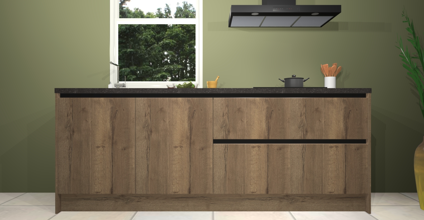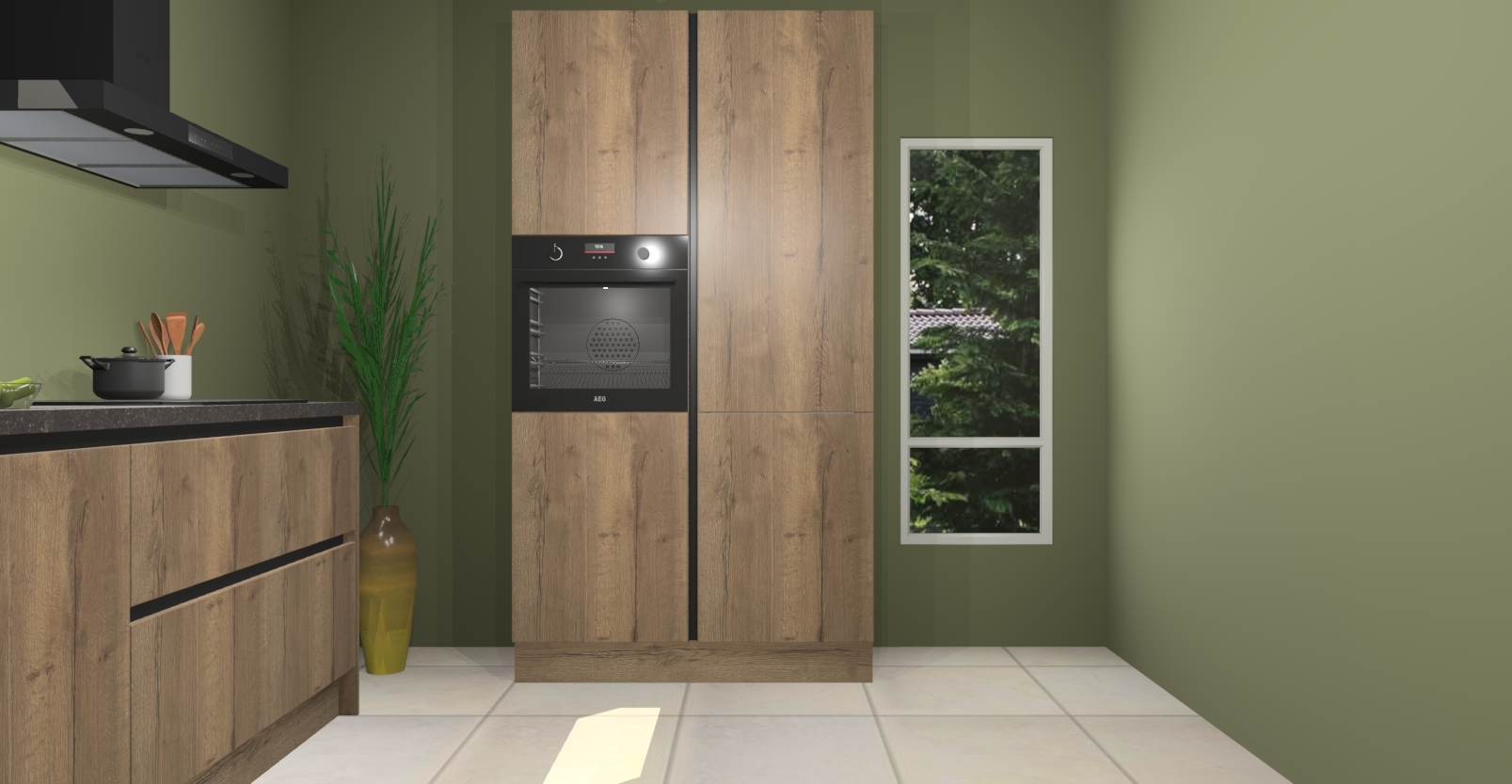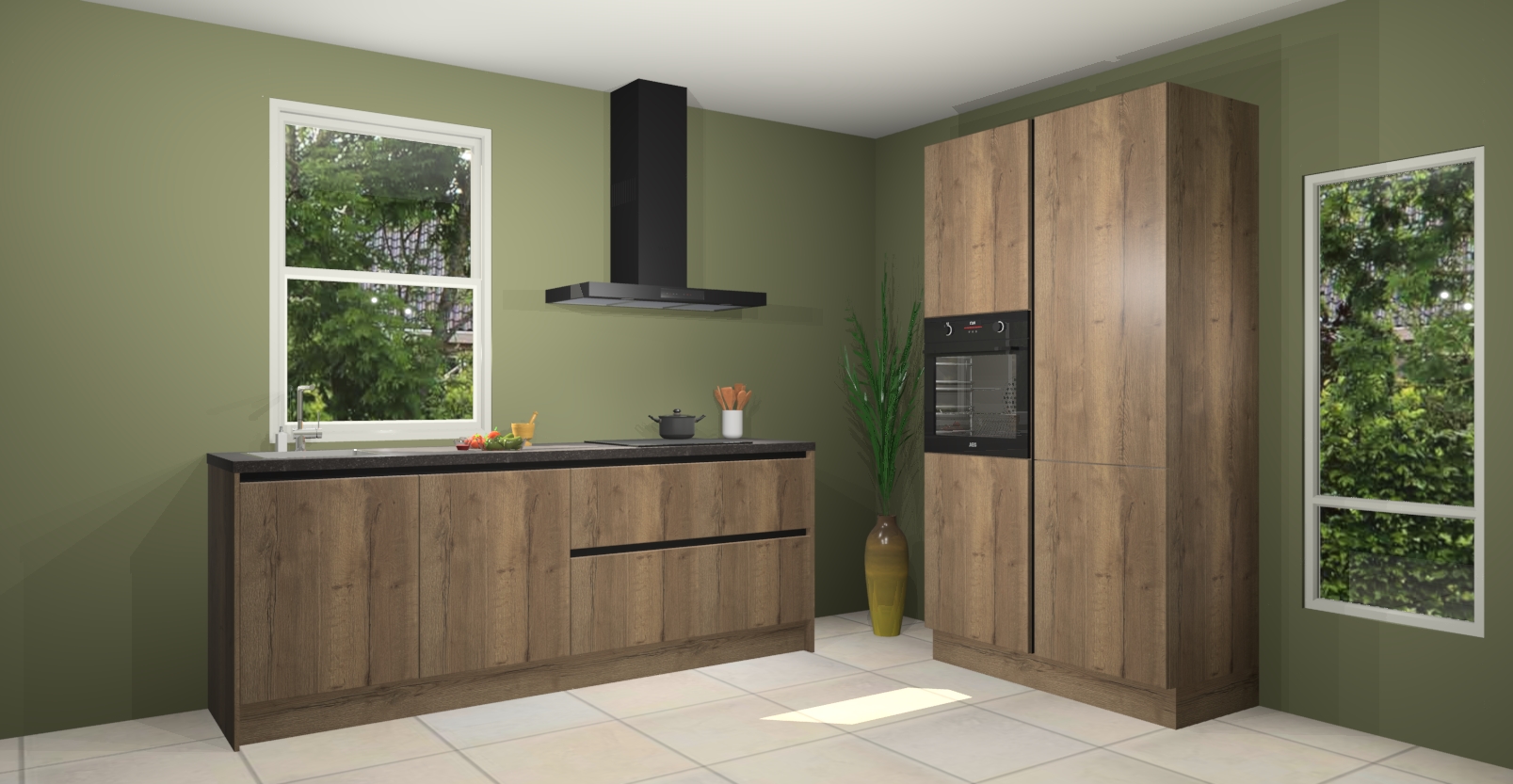 De Chocolade eiken greeploze keuken Monaco heeft voldoende opbergruimte om uw keukenbenodigdheden georganiseerd en netjes te houden. Geniet van het gemak van de soft-close deuren, die deze stijlvolle look perfect afmaken. Maar dat is nog niet alles. Met de Chocolade eiken greeploze keuken Monaco krijgt u maar liefst 5 ingebouwde apparaten: een oven, inductiekookplaat, afzuigkap, vaatwasser en koelkast. Deze kunnen gemakkelijk worden geüpgraded naar AEG als ze besteld zijn.