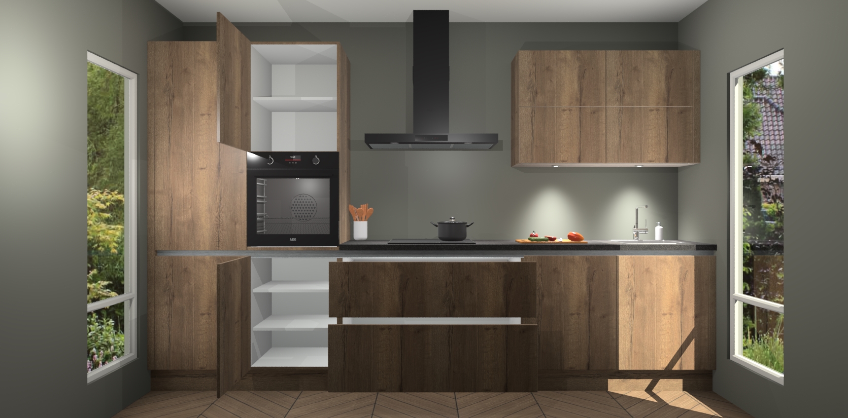 Met een levering binnen 7 weken na bestelling heeft deze keuken bovendien geen last van de ongemakkelijke lange wachttijden die bij andere keukens horen - geen vertragingen meer; gewoon snel resultaat! Krijg meteen die droomkeuken look met de Chocolade Eiken greeploze Keuken Parijs!