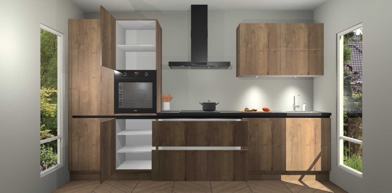 Met een levering binnen 7 weken na bestelling heeft deze keuken bovendien geen last van de ongemakkelijke lange wachttijden die bij andere keukens horen - geen vertragingen meer; gewoon snel resultaat! Krijg meteen die droomkeuken look met de Chocolade Eiken greeploze Keuken Parijs!
