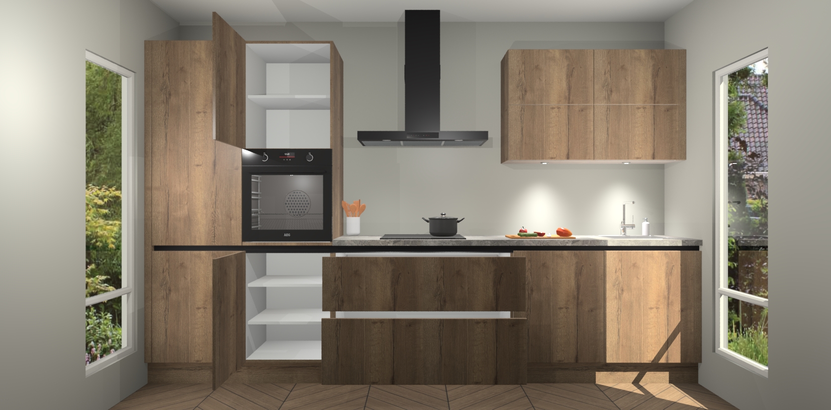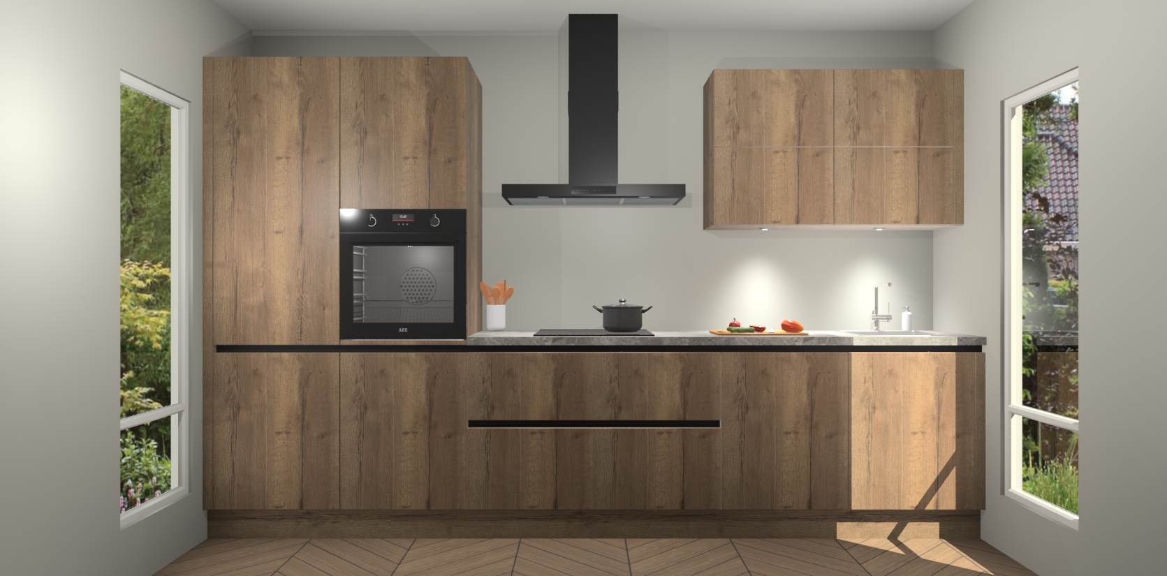 Met een levering binnen 7 weken na bestelling heeft deze keuken bovendien geen last van de ongemakkelijke lange wachttijden die bij andere keukens horen - geen vertragingen meer; gewoon snel resultaat! Krijg meteen die droomkeuken look met de Chocolade Eiken greeploze Keuken Parijs!