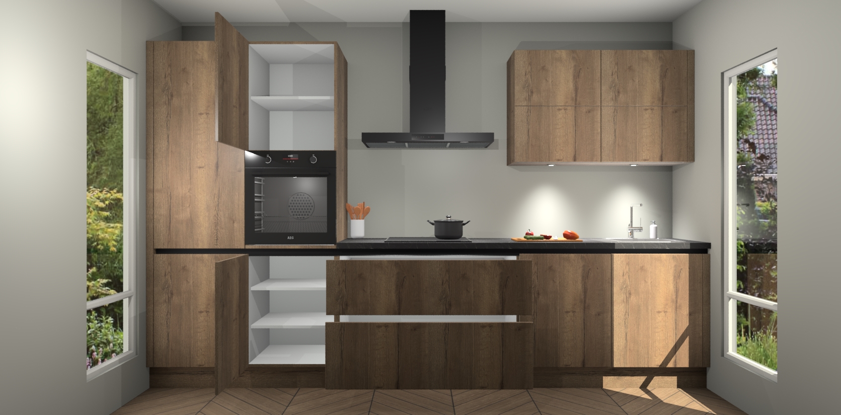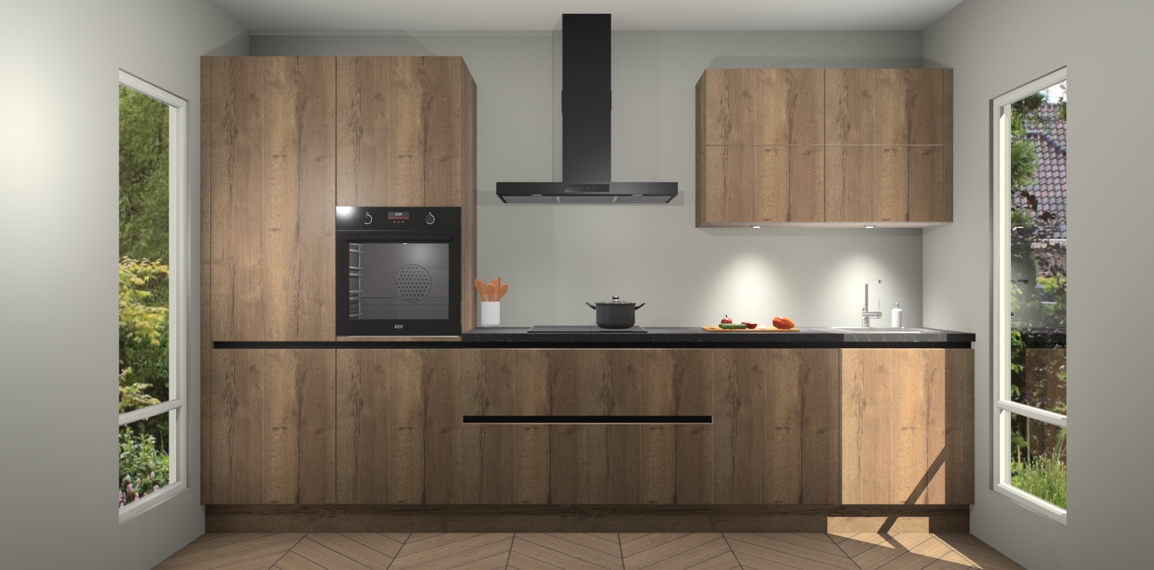 Met een levering binnen 7 weken na bestelling heeft deze keuken bovendien geen last van de ongemakkelijke lange wachttijden die bij andere keukens horen - geen vertragingen meer; gewoon snel resultaat! Krijg meteen die droomkeuken look met de Chocolade Eiken greeploze Keuken Parijs!