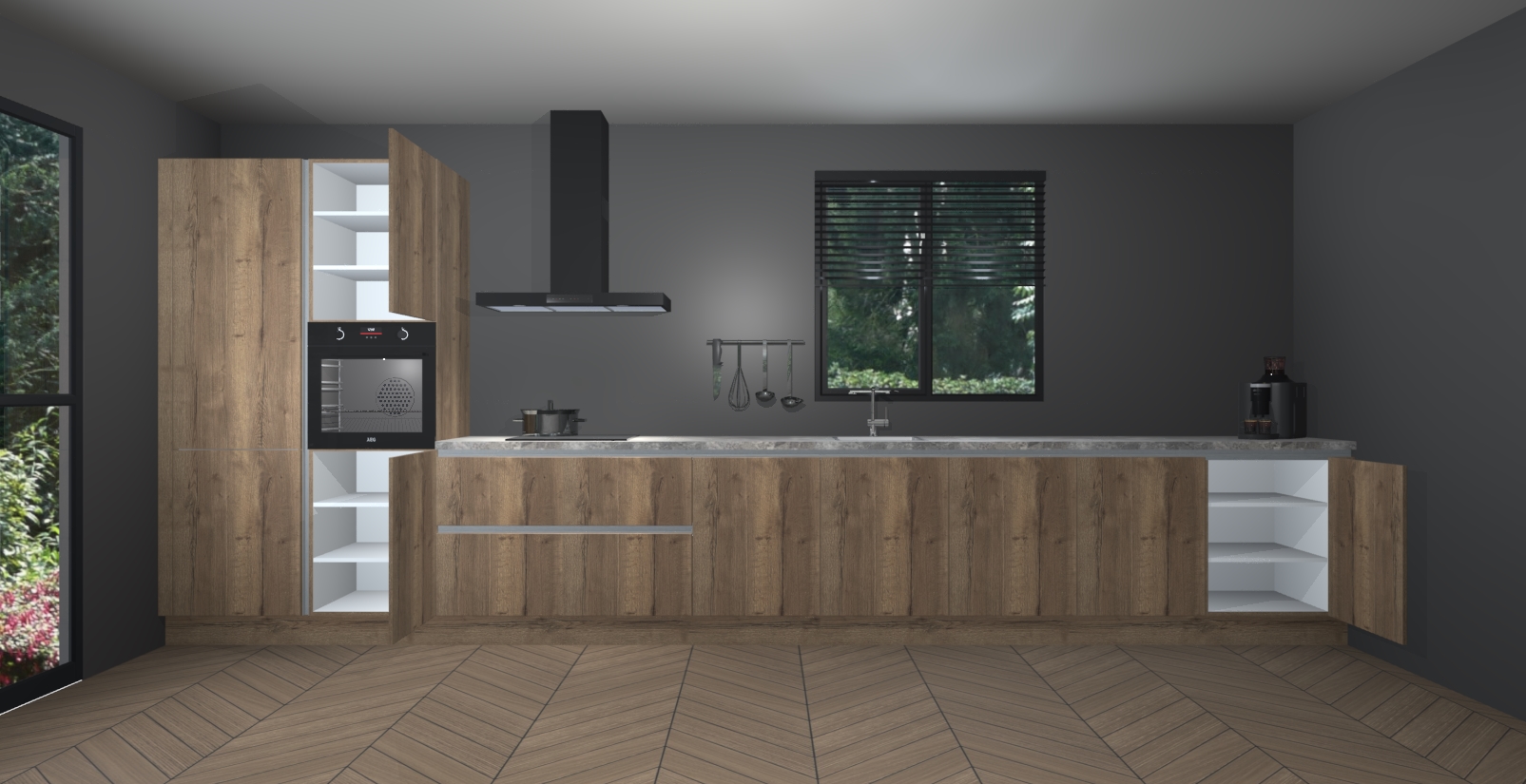 Inclusief plinten, stelpoten en werkblad