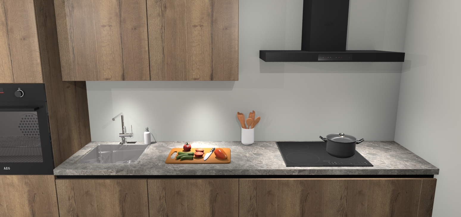 - Uitsparing van kookplaat, spoelbak en kraan dient u zelf te verzorgen.