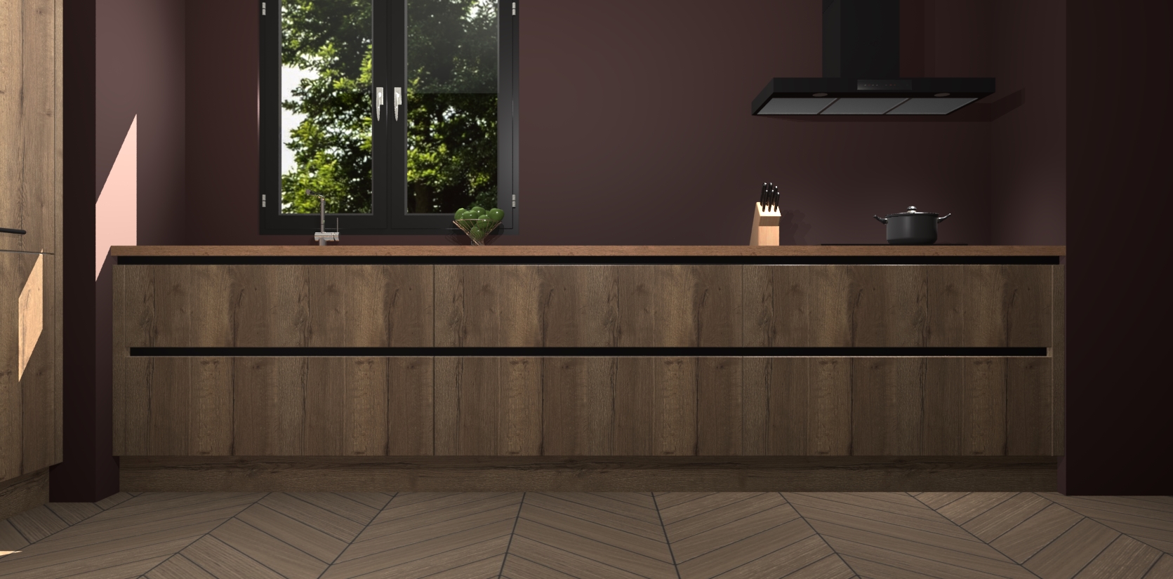 Maak van uw keuken een plek waar u trots op bent - trakteer uzelf vandaag nog op de kwaliteit en elegantie van de Chocolade Eiken greeploze keuken Taipei !
