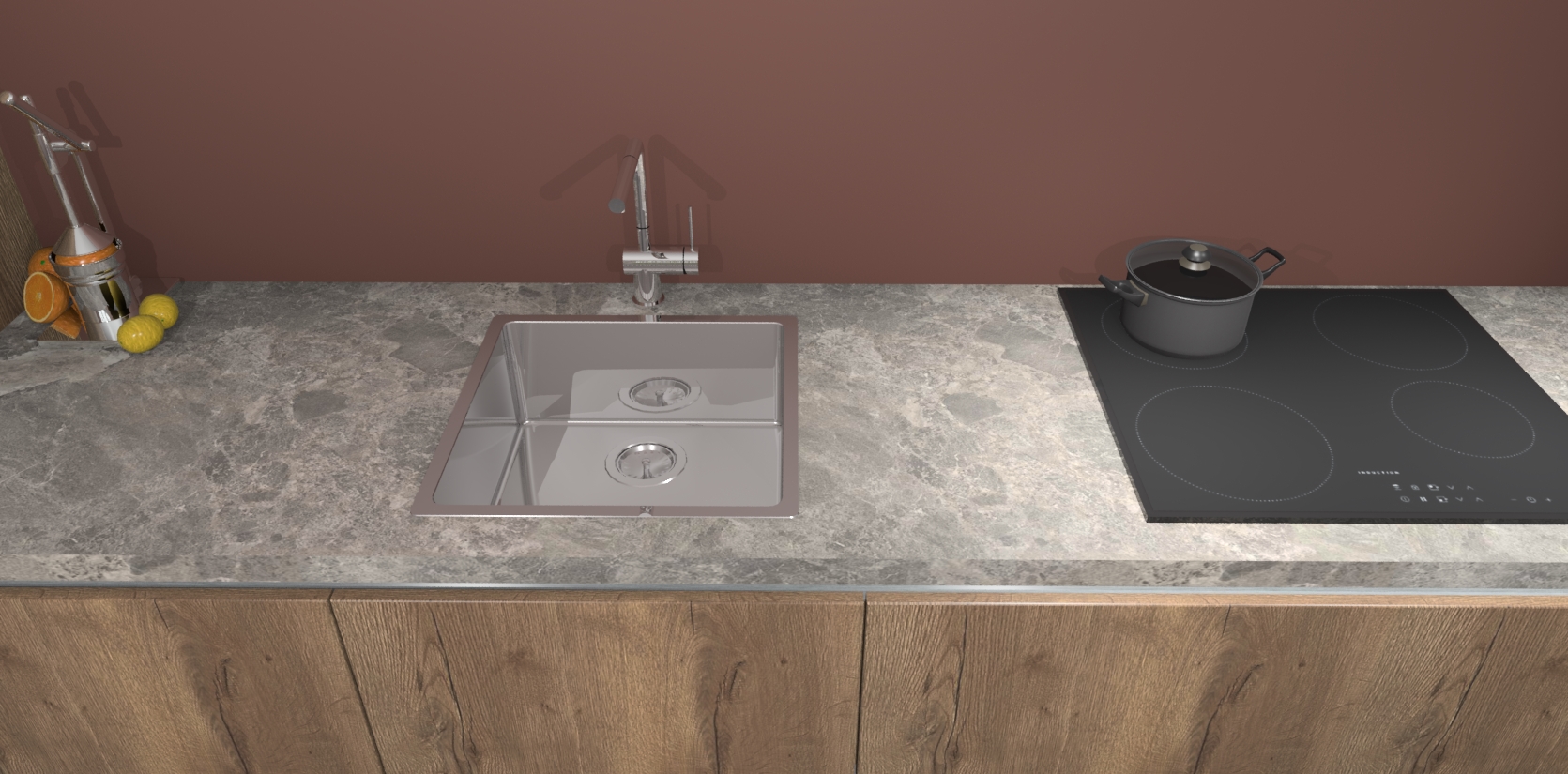 - Uitsparing van kookplaat, spoelbak en kraan dient u zelf te verzorgen.