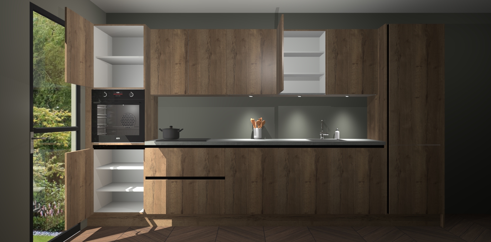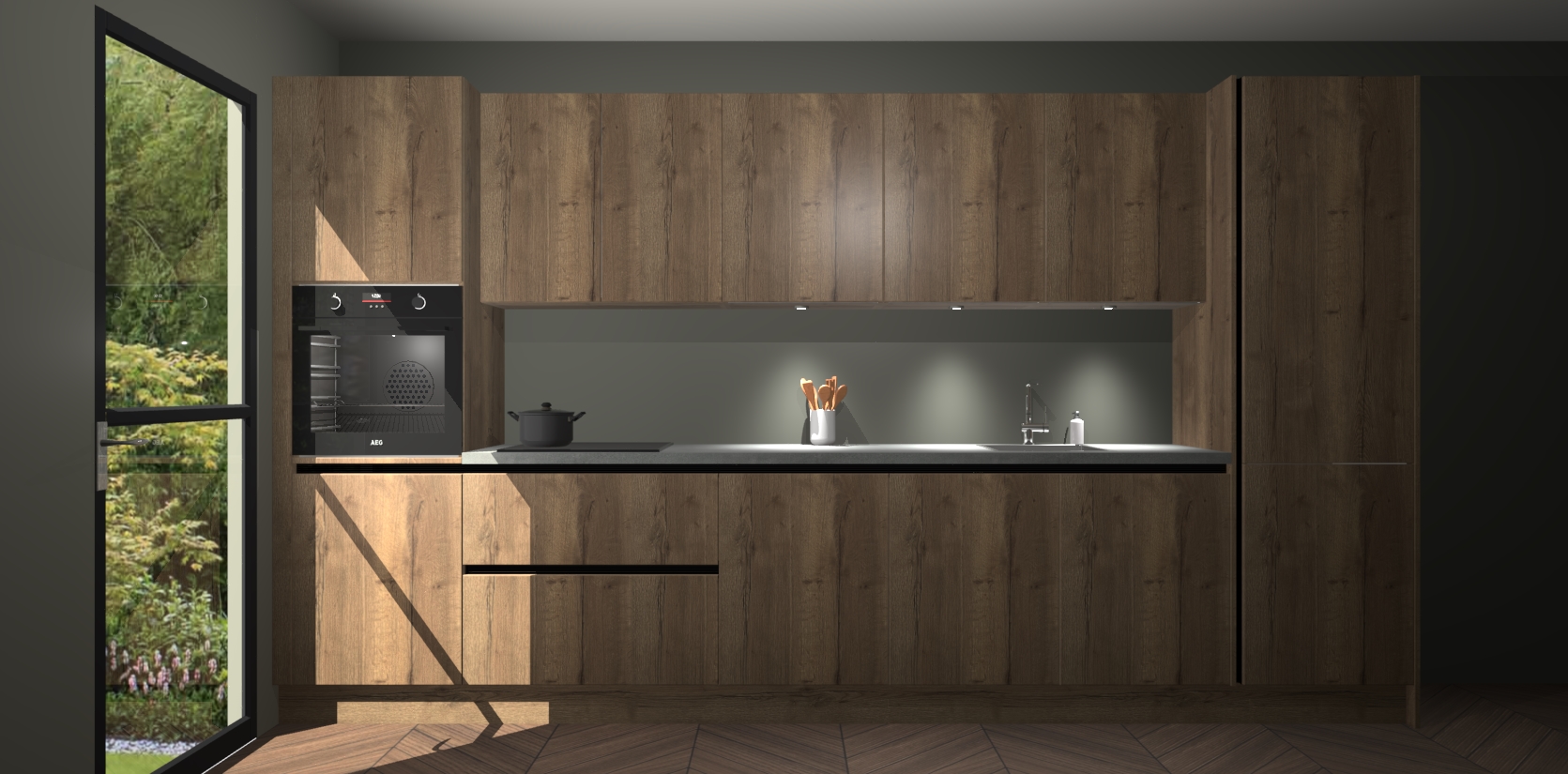 Dit is de perfecte keuken voor wie op zoek is naar een luxueuze stijl zonder zijn portemonnee te legen! Het chique ontwerp van de chocolade eiken greeploze keuken Wels voegt dat vleugje verfijning toe aan elk huis. Het gemak van voorgemonteerde kasten bespaart u talloze uren tijd en energie, zodat u veel sneller dan verwacht kunt beginnen te genieten van uw prachtige nieuwe keuken. Bovendien bedraagt de levertijd slechts 7 weken.