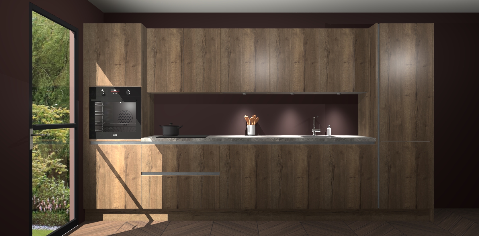 Dit is de perfecte keuken voor wie op zoek is naar een luxueuze stijl zonder zijn portemonnee te legen! Het chique ontwerp van de chocolade eiken greeploze keuken Wels voegt dat vleugje verfijning toe aan elk huis. Het gemak van voorgemonteerde kasten bespaart u talloze uren tijd en energie, zodat u veel sneller dan verwacht kunt beginnen te genieten van uw prachtige nieuwe keuken. Bovendien bedraagt de levertijd slechts 7 weken.
