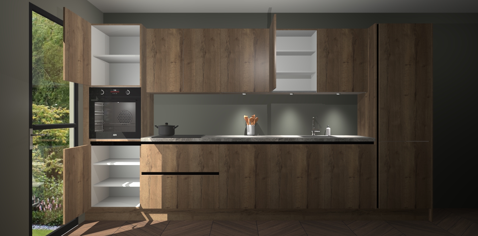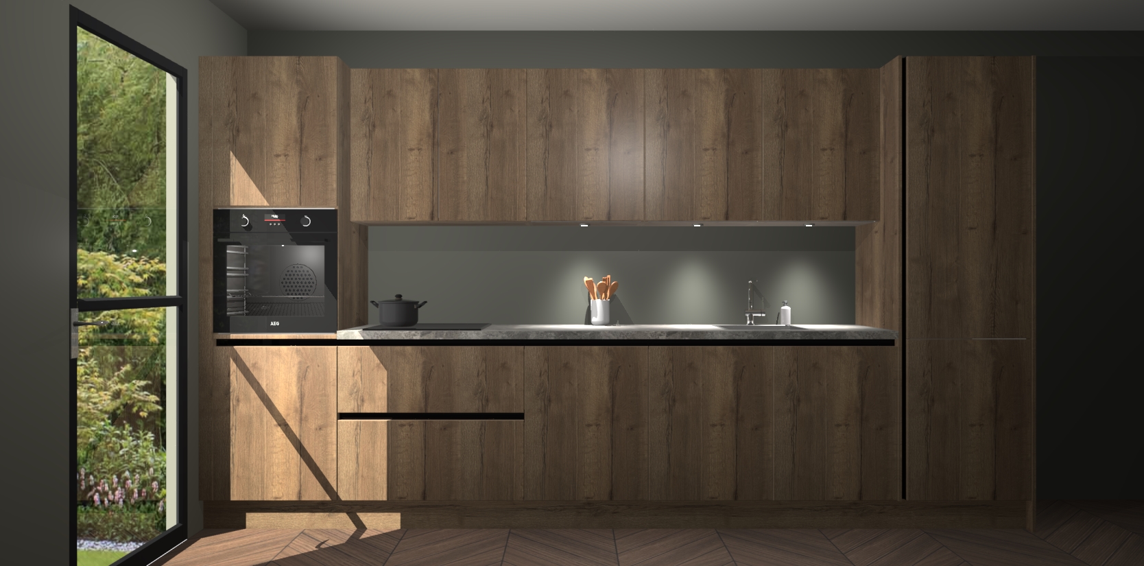 Dit is de perfecte keuken voor wie op zoek is naar een luxueuze stijl zonder zijn portemonnee te legen! Het chique ontwerp van de chocolade eiken greeploze keuken Wels voegt dat vleugje verfijning toe aan elk huis. Het gemak van voorgemonteerde kasten bespaart u talloze uren tijd en energie, zodat u veel sneller dan verwacht kunt beginnen te genieten van uw prachtige nieuwe keuken. Bovendien bedraagt de levertijd slechts 7 weken.