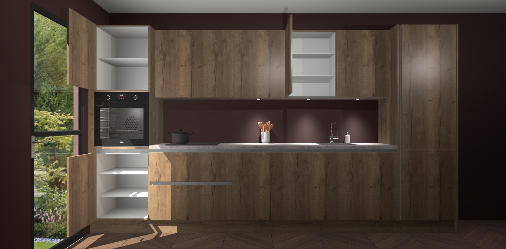 Dit is de perfecte keuken voor wie op zoek is naar een luxueuze stijl zonder zijn portemonnee te legen! Het chique ontwerp van de chocolade eiken greeploze keuken Wels voegt dat vleugje verfijning toe aan elk huis. Het gemak van voorgemonteerde kasten bespaart u talloze uren tijd en energie, zodat u veel sneller dan verwacht kunt beginnen te genieten van uw prachtige nieuwe keuken. Bovendien bedraagt de levertijd slechts 7 weken.