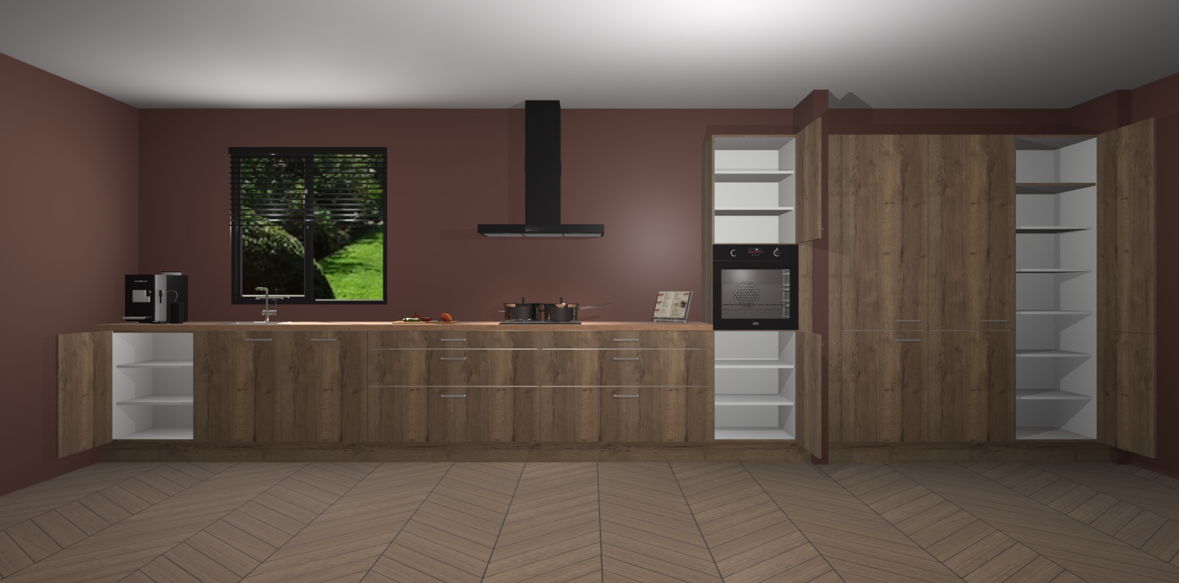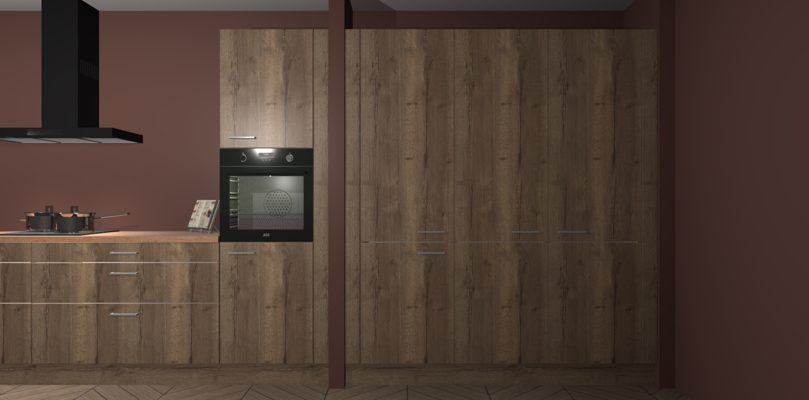Dankzij de afwerking past de Chocolade Eiken keuken Angola naadloos in elk huis of appartement. De soft-close deuren geven je extra gemoedsrust, want ze sluiten vanzelf en slaan nooit dicht! En alsof dat nog niet genoeg is, worden deze kasten volledig gemonteerd geleverd, dus maak je geen zorgen over eventuele installatieproblemen.