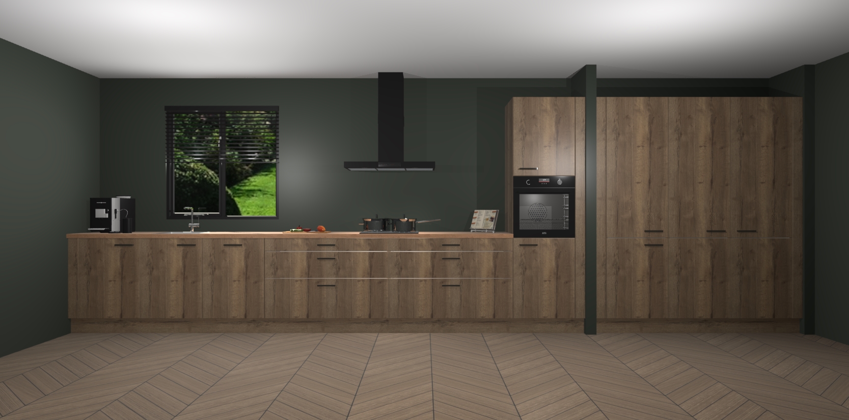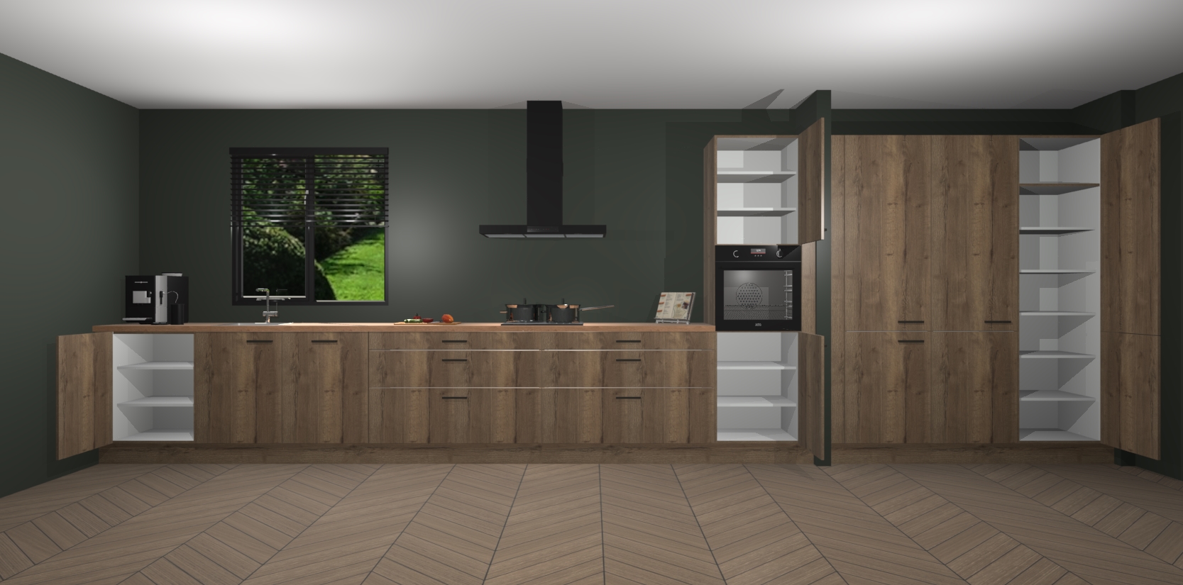 Dankzij de afwerking past de Chocolade Eiken keuken Angola naadloos in elk huis of appartement. De soft-close deuren geven je extra gemoedsrust, want ze sluiten vanzelf en slaan nooit dicht! En alsof dat nog niet genoeg is, worden deze kasten volledig gemonteerd geleverd, dus maak je geen zorgen over eventuele installatieproblemen.