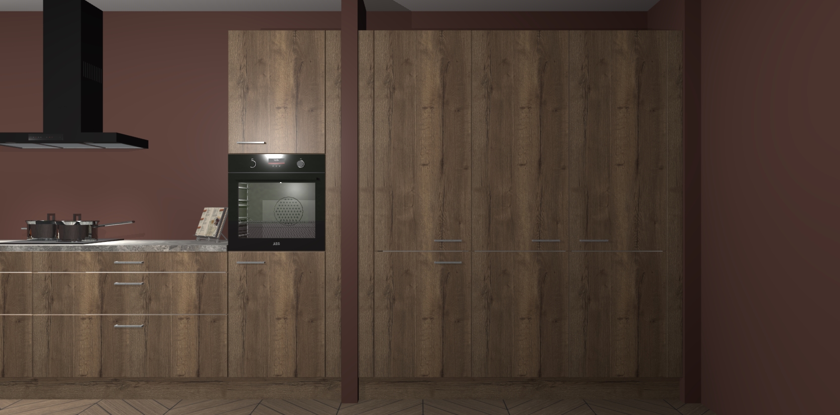 Dankzij de afwerking past de Chocolade Eiken keuken Angola naadloos in elk huis of appartement. De soft-close deuren geven je extra gemoedsrust, want ze sluiten vanzelf en slaan nooit dicht! En alsof dat nog niet genoeg is, worden deze kasten volledig gemonteerd geleverd, dus maak je geen zorgen over eventuele installatieproblemen.