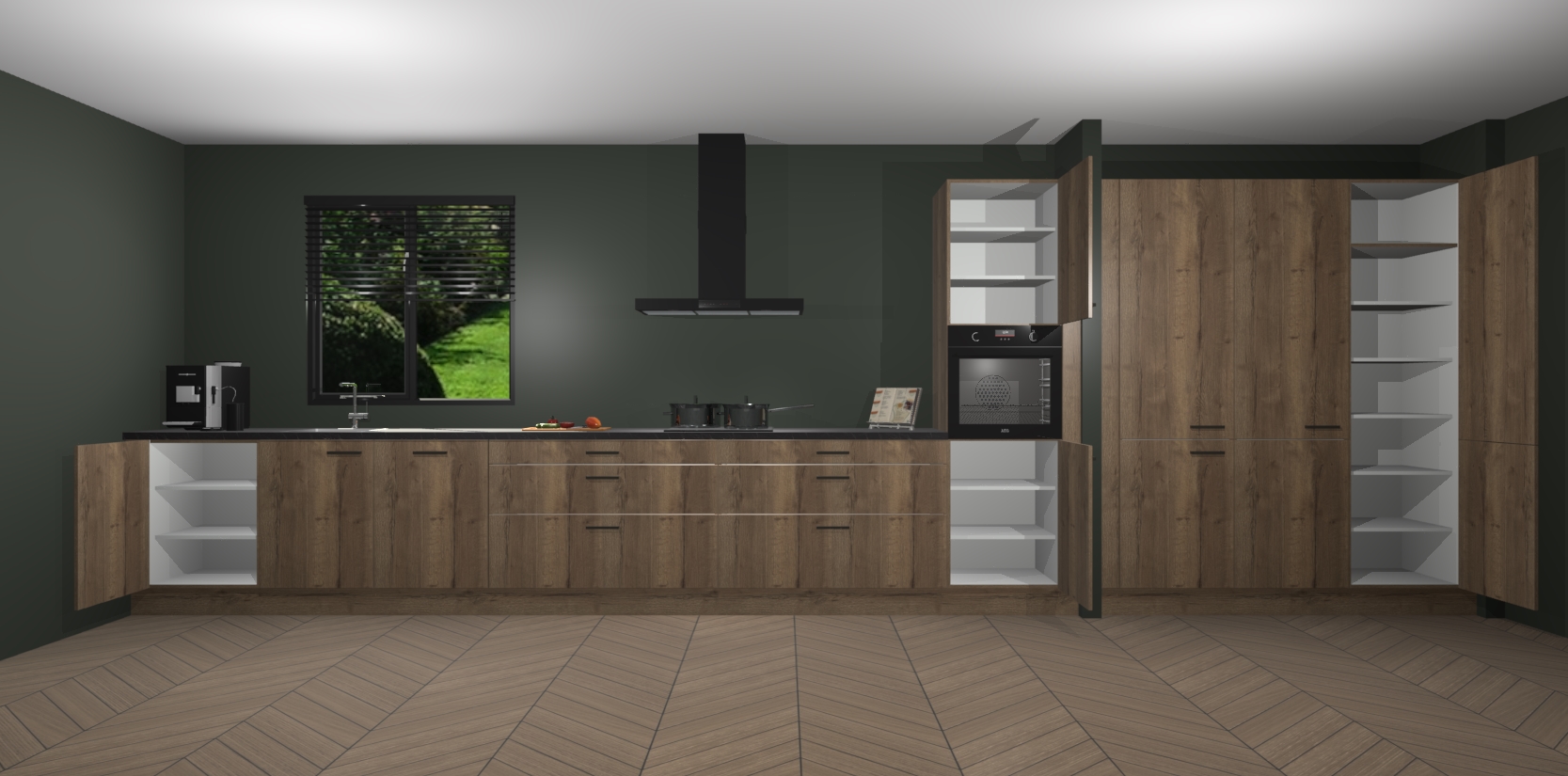 Dankzij de afwerking past de Chocolade Eiken keuken Angola naadloos in elk huis of appartement. De soft-close deuren geven je extra gemoedsrust, want ze sluiten vanzelf en slaan nooit dicht! En alsof dat nog niet genoeg is, worden deze kasten volledig gemonteerd geleverd, dus maak je geen zorgen over eventuele installatieproblemen.