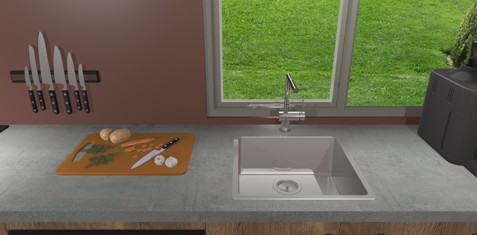 - De spoelbak is nog niet in gevreesd. Dit dient tijdens het werk gedaan te worden