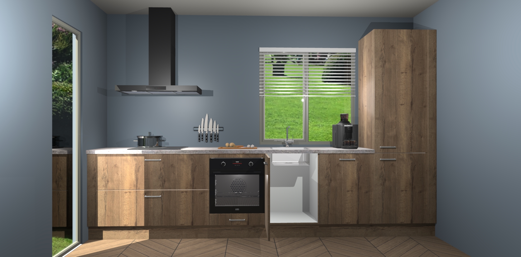 - Ombouw om de oven onder het werkblad te kunnen monteren