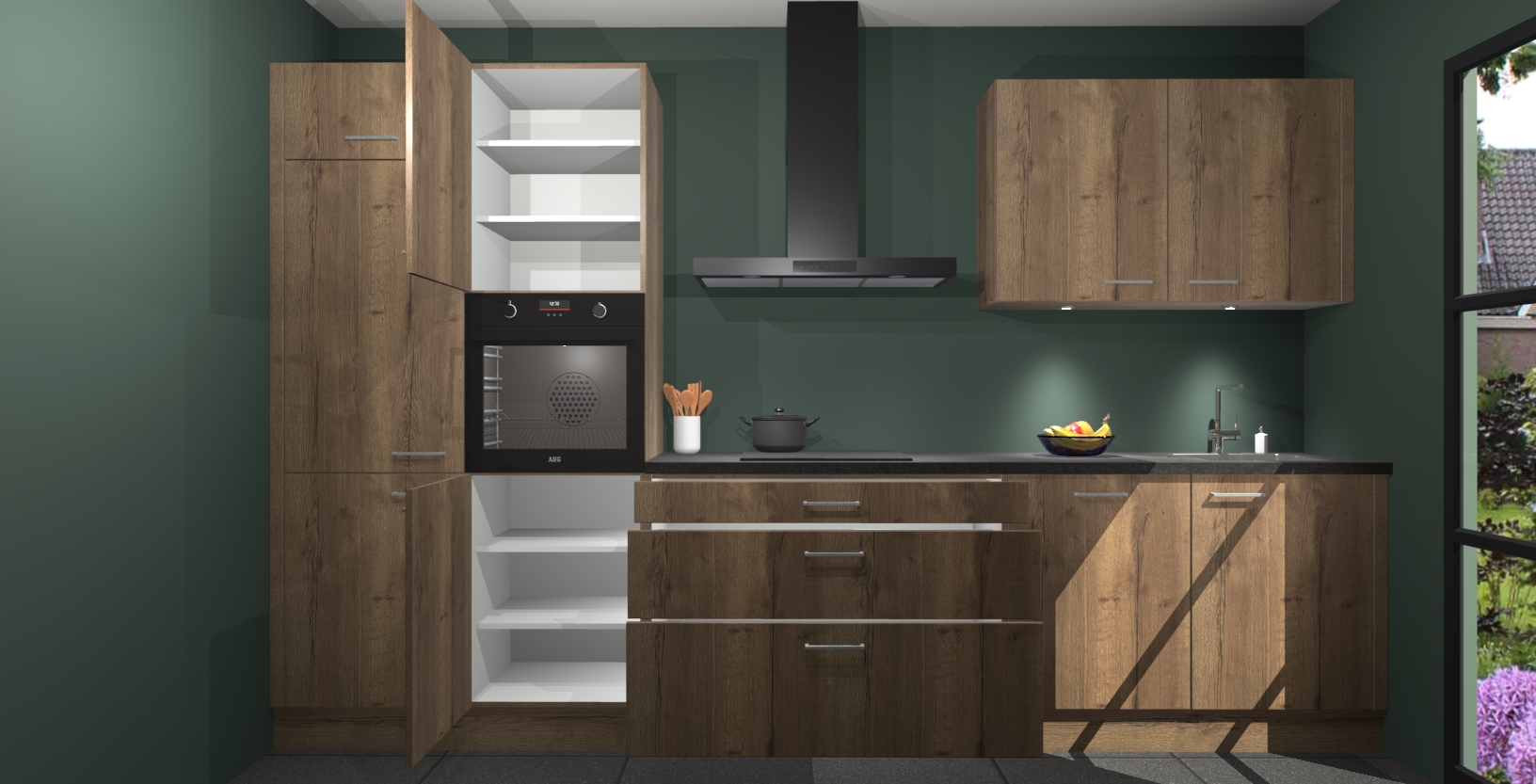 Bovendien is er veel opbergruimte met deze pracht keuken, zodat u ervoor kunt zorgen dat uw kasten en lades altijd georganiseerd zijn - iets wat iedereen waardeert in een drukke keuken. Niemand houdt van een lawaaierige keuken als u de deuren opent en sluit; dankzij de soft close technologie gaat het openen en sluiten van de deuren geruisloos! Bovendien krijgt u de levering binnen 7 weken - hoe geweldig is dat?