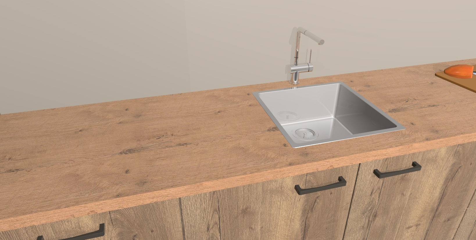 - De spoelbak is nog niet in gevreesd. Dit dient tijdens het werk gedaan te worden