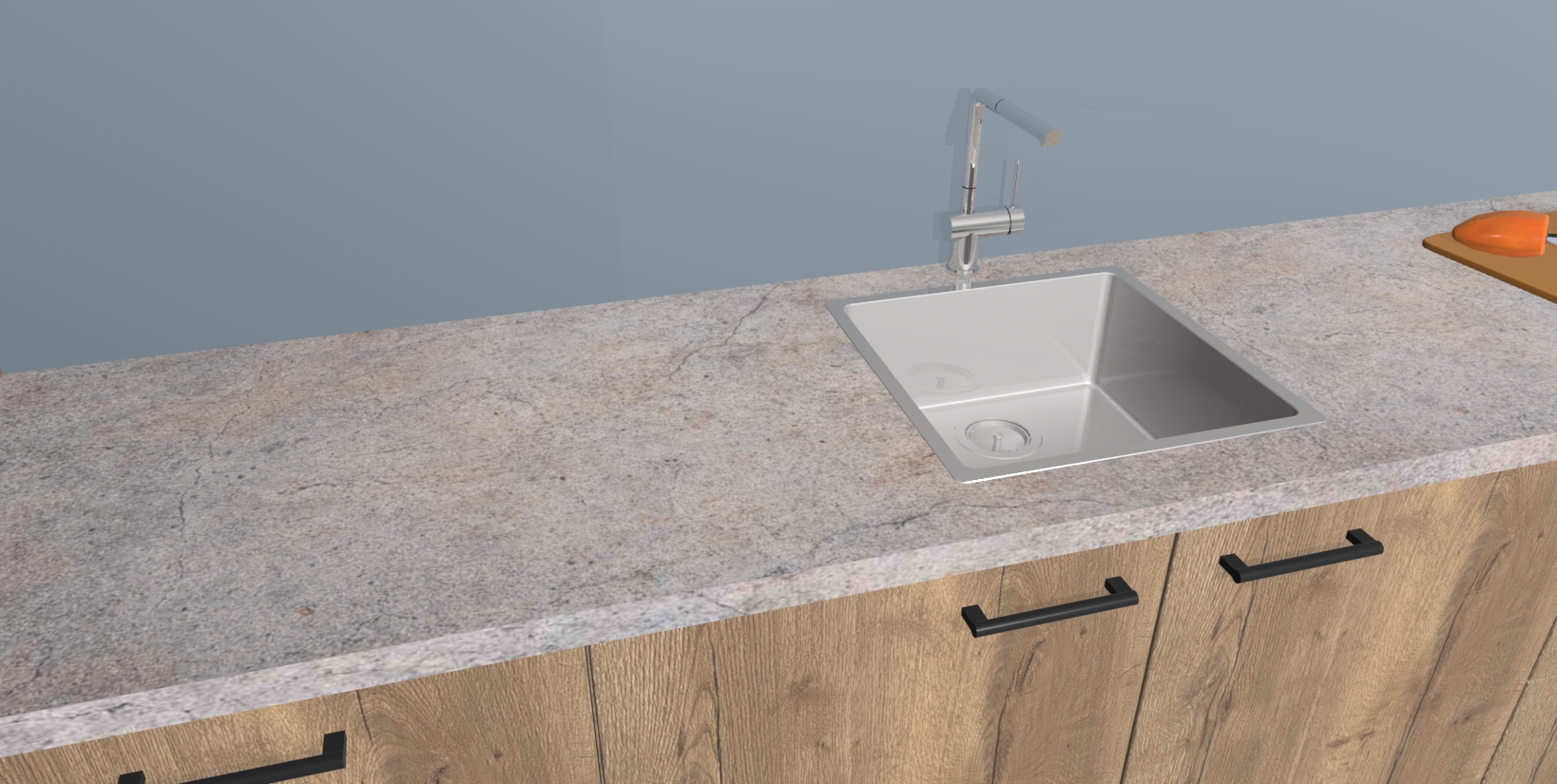 - De spoelbak is nog niet in gevreesd. Dit dient tijdens het werk gedaan te worden