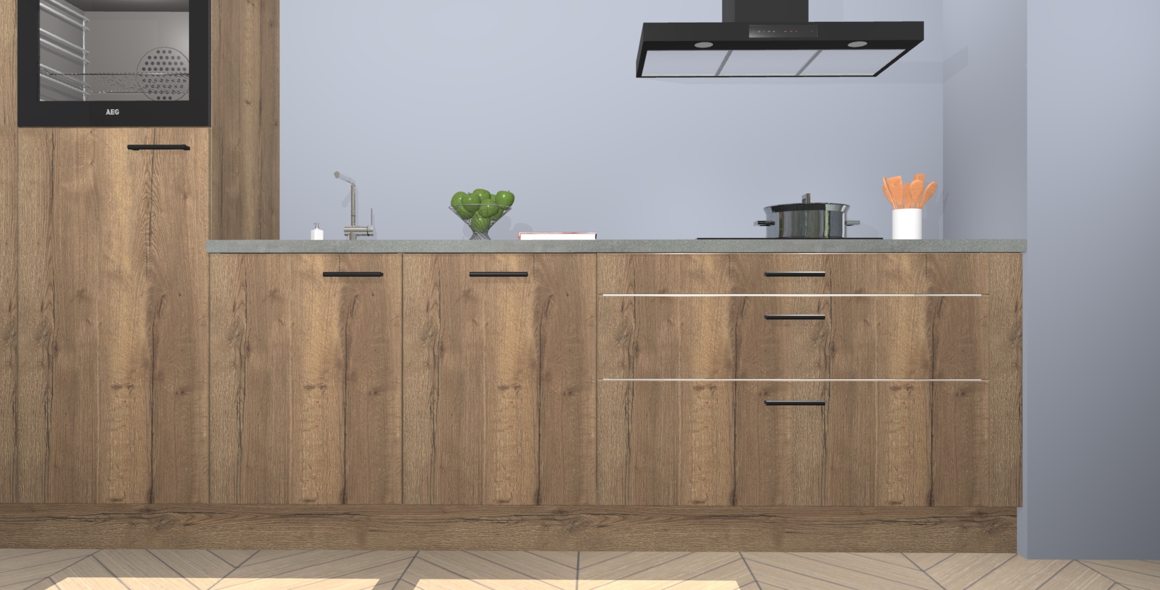 Inclusief plinten, stelpoten en werkblad