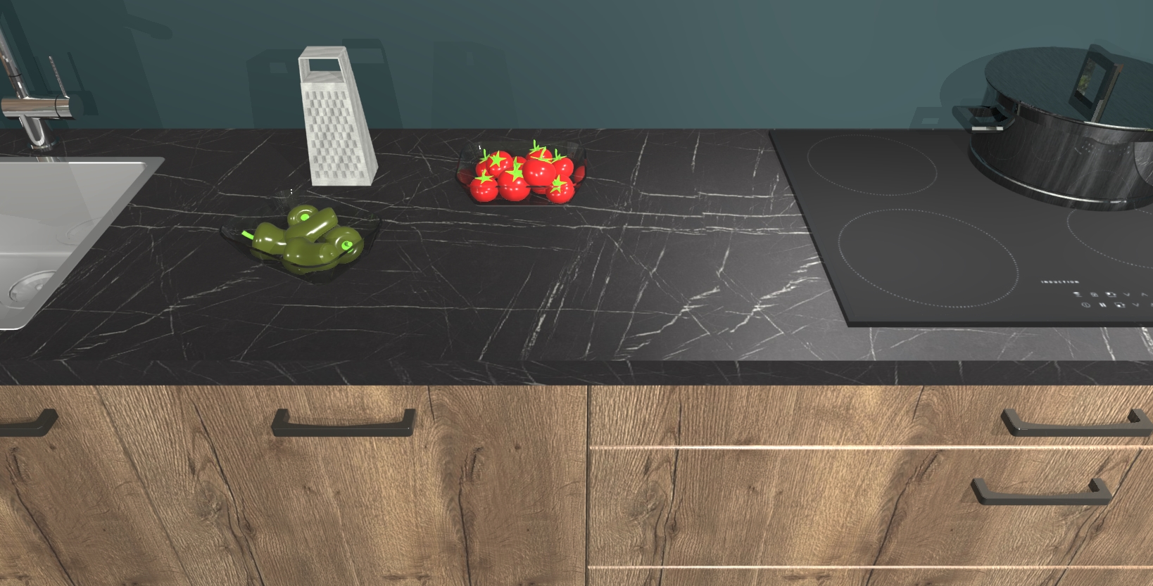 - Bij een hoekwerkblad zijn de hoeken in gevreesd en op maat gemaakt